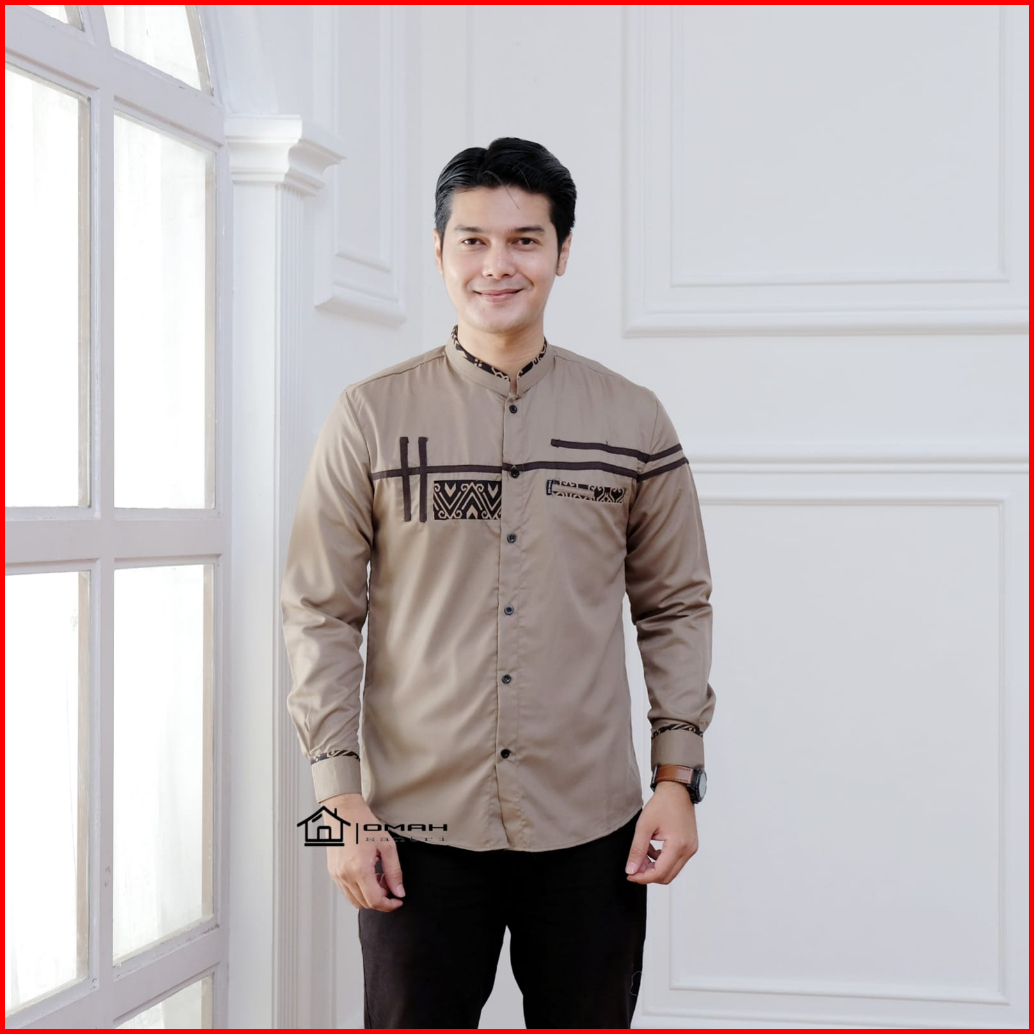 Kemeja Koko Pria Baju Koko Muslim Pria Dewasa Lengan Panjang Koko Kombinasi Batik Produk Original El Rumi Bahan Katun To