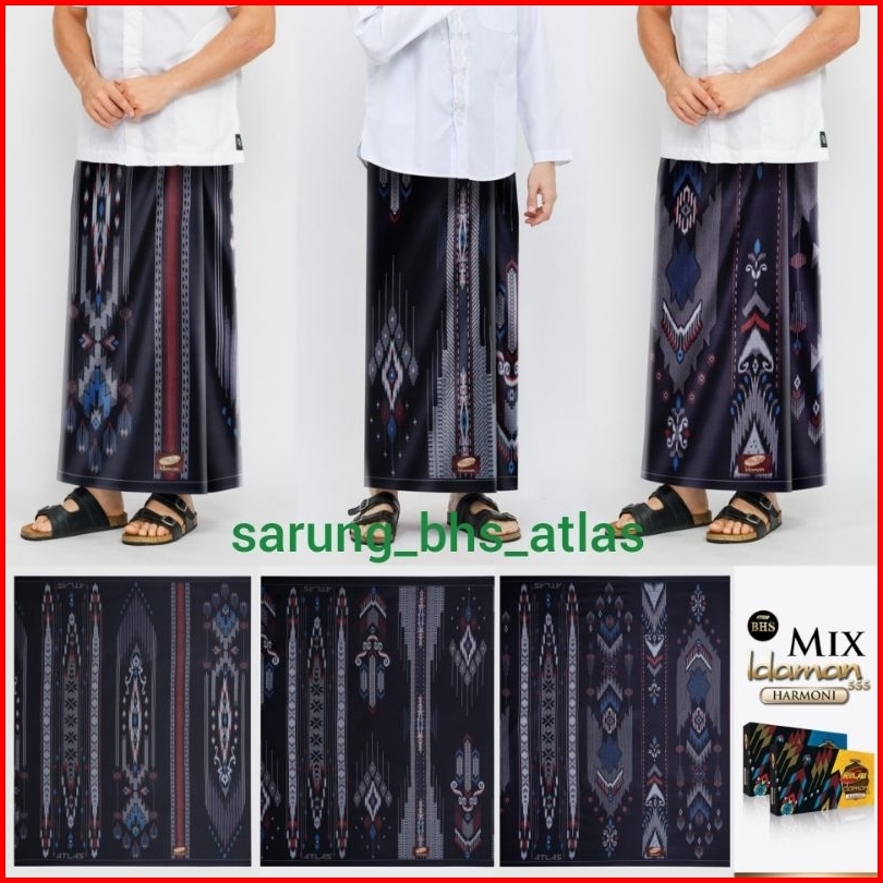 Sarung Atlas Idaman Kembang Harmoni 555 Motif Bhs Warna Hitam Original