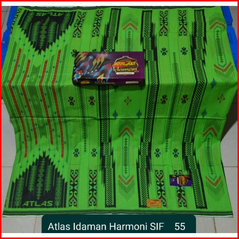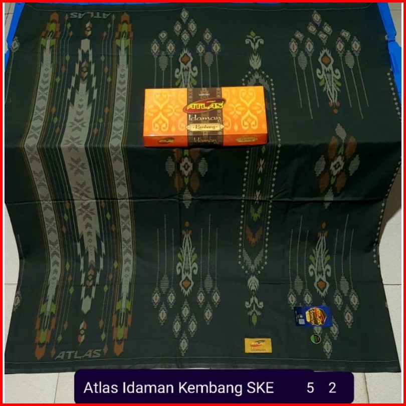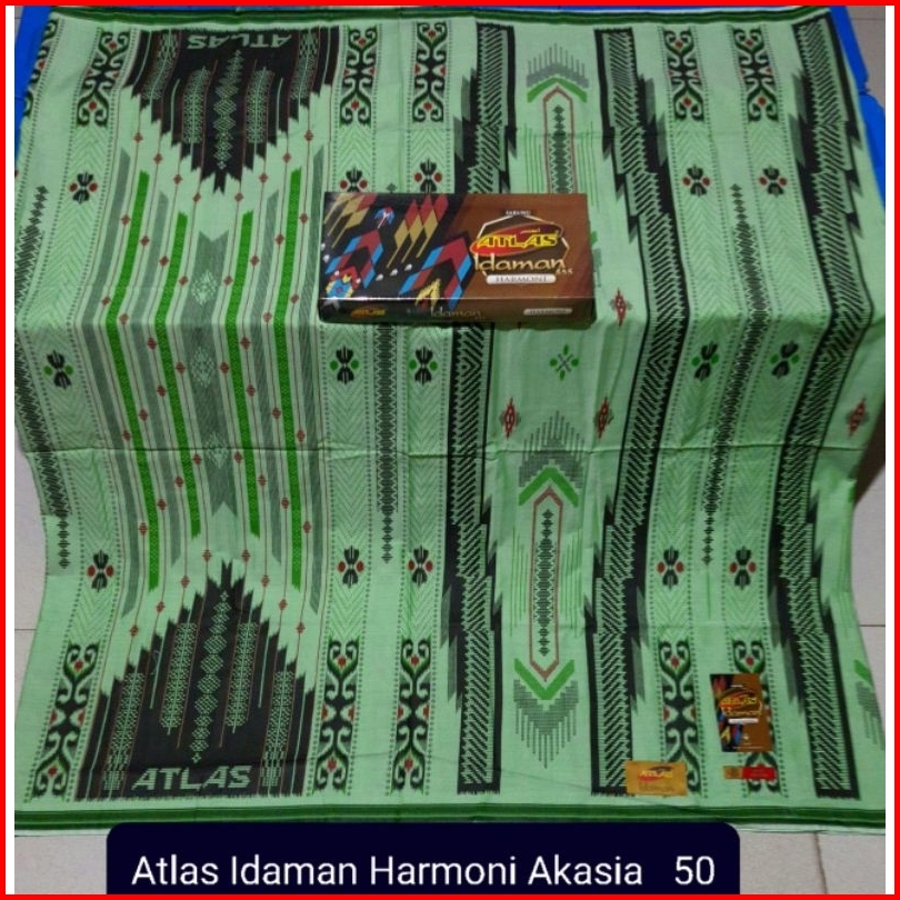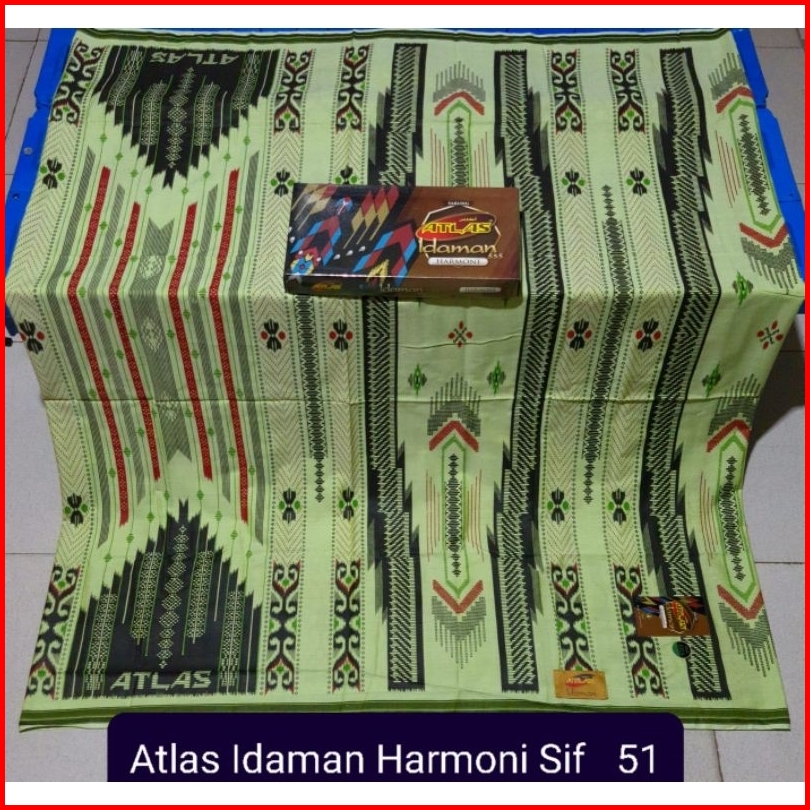 Sarung Atlas Idaman Kembang Harmoni Motif Bhs Warna Putih Hijau
