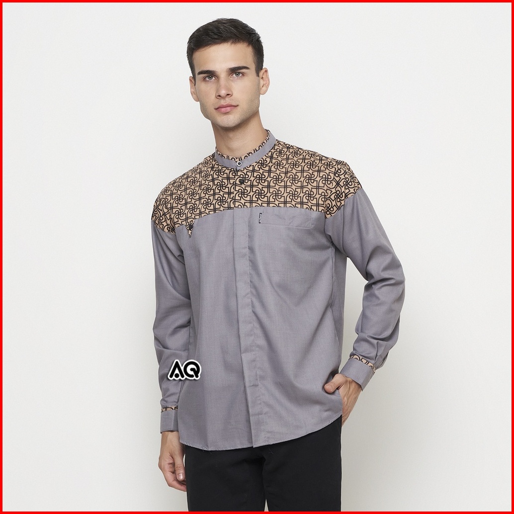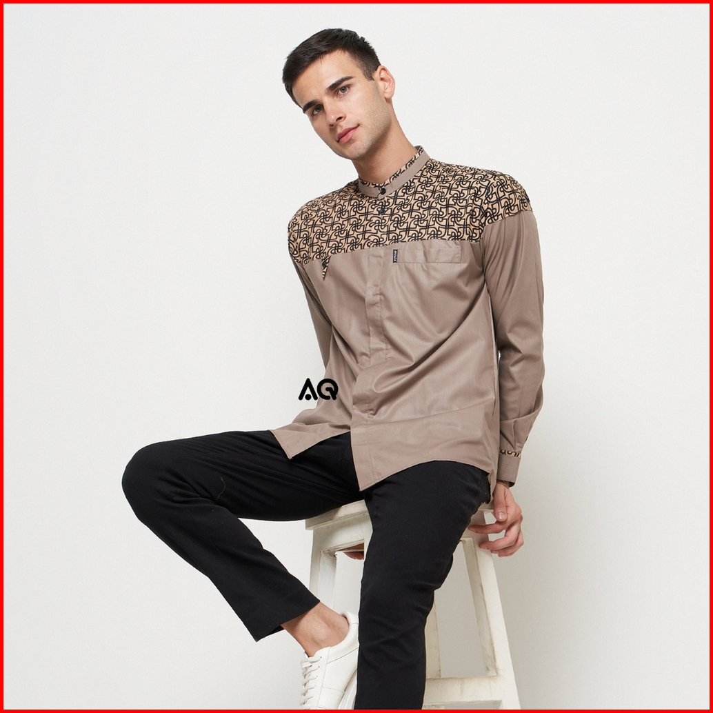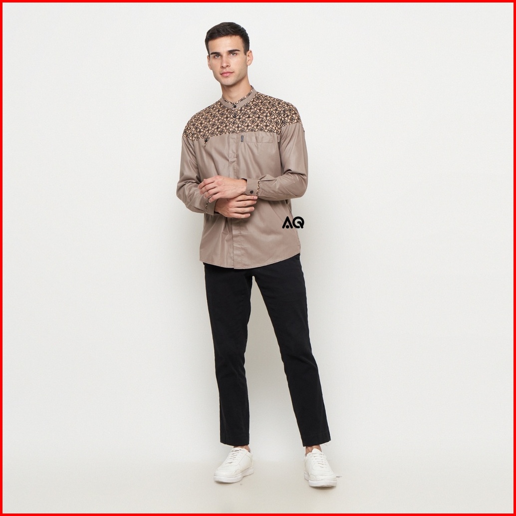 Baju Koko Pria Lengan Panjang Motif Batik Bima