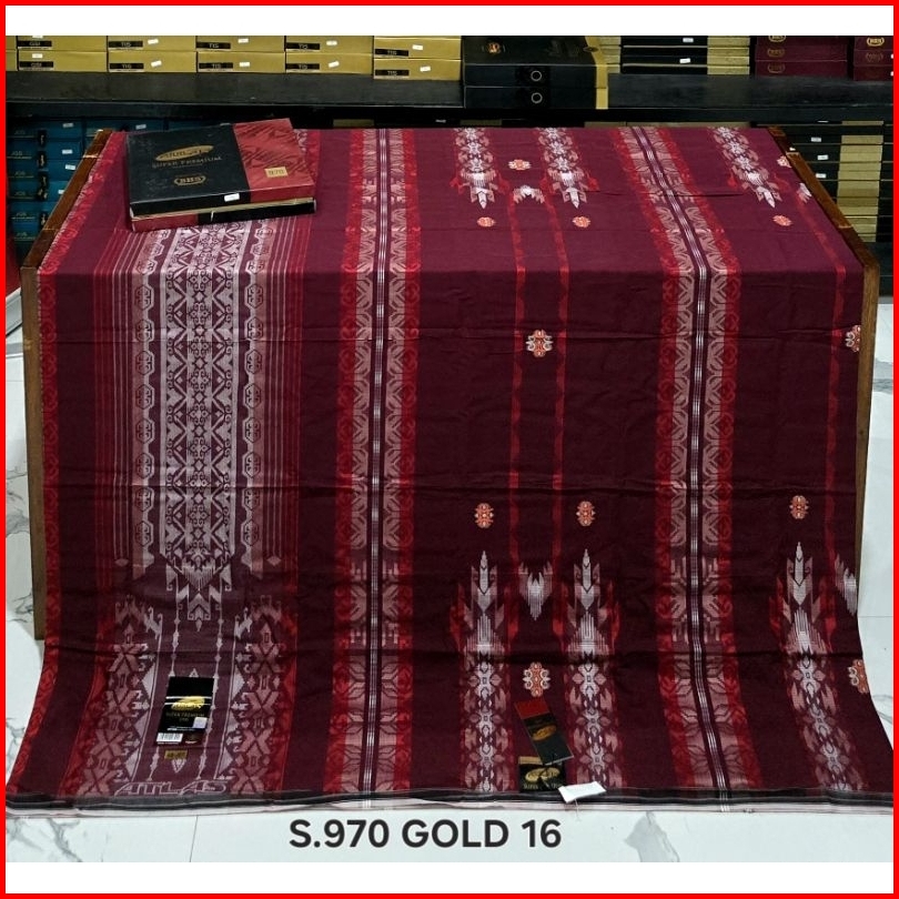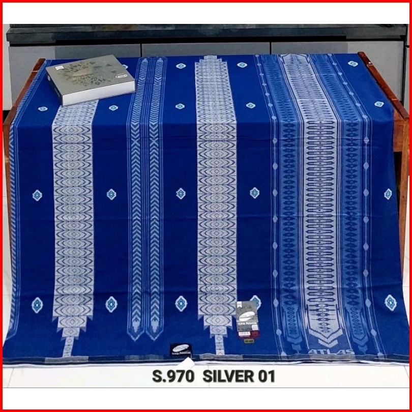 Sarung Atlas Super Premium S.970 Kualitas Dan Silver Kemasan Box Dan Paper Bag