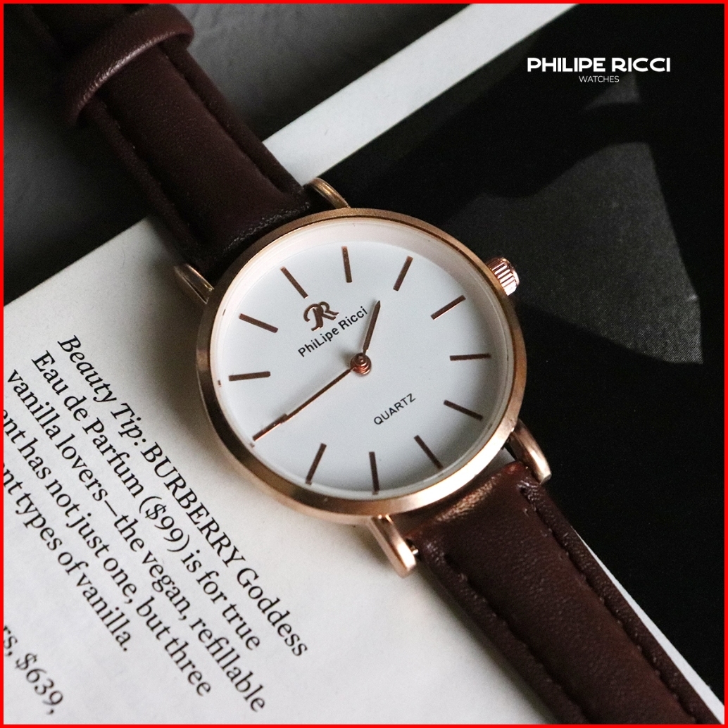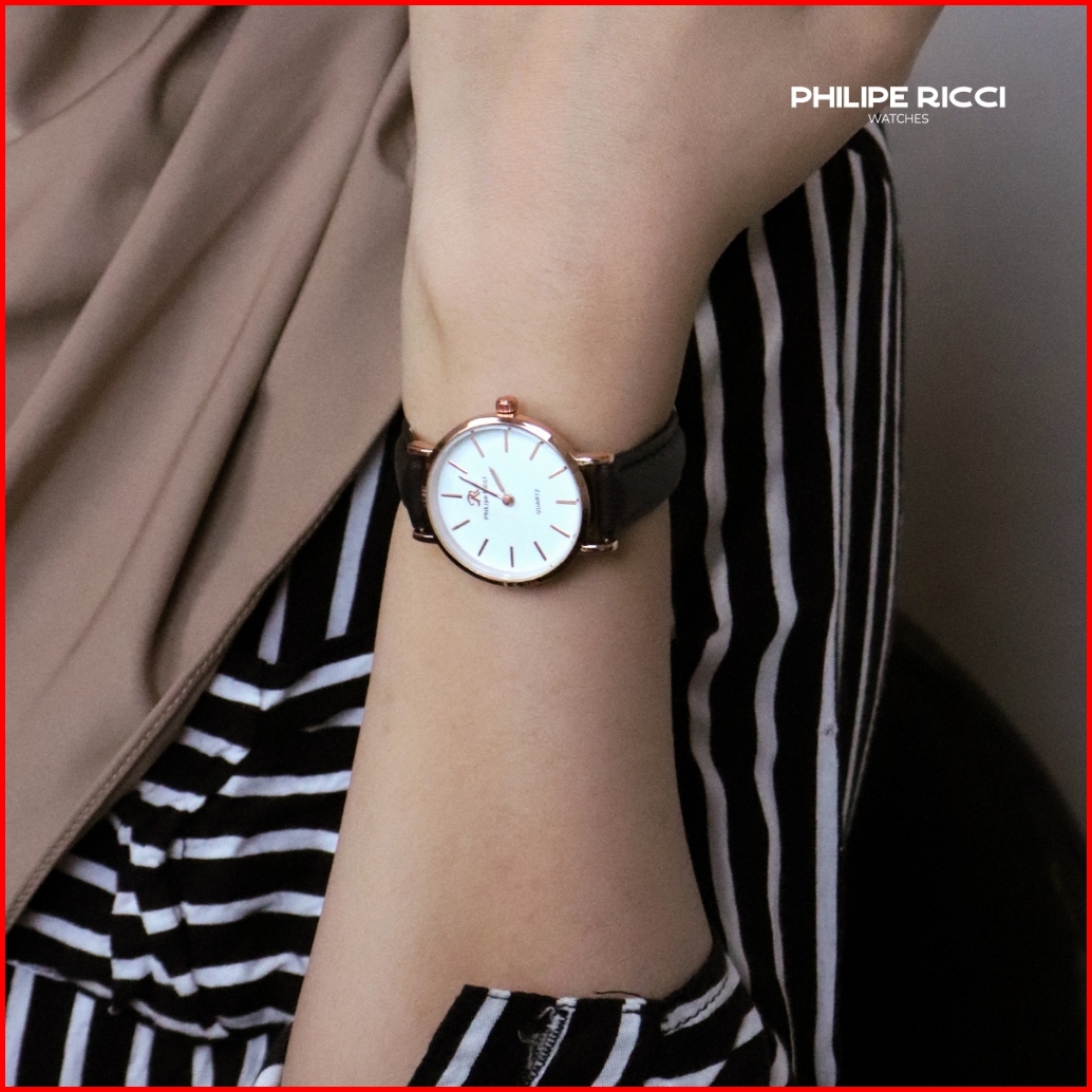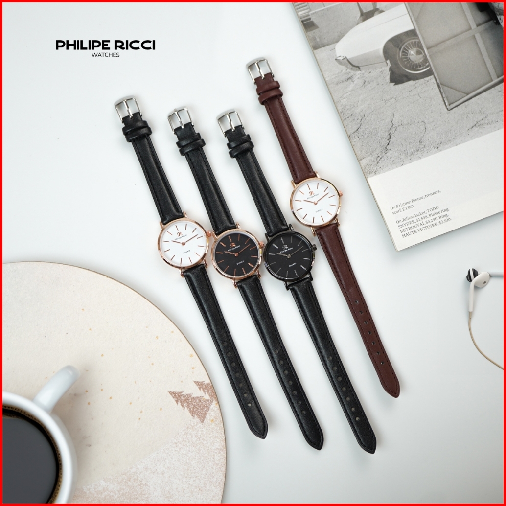 Philipe Ricci Jam Tangan Wanita Tipis 100 Original Kulit Kecil Fashion Simple Cewek Quartz Analog Dial Bulat Strap Tali