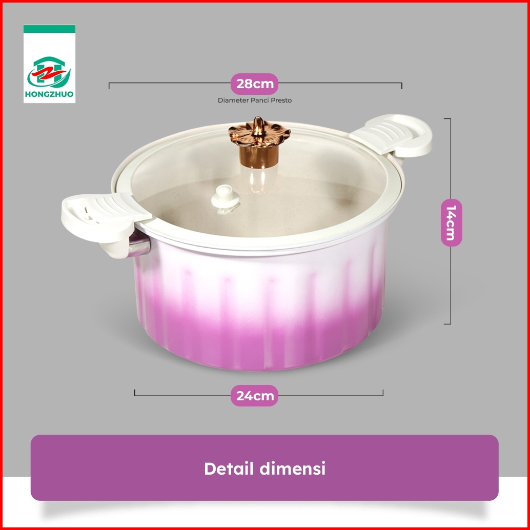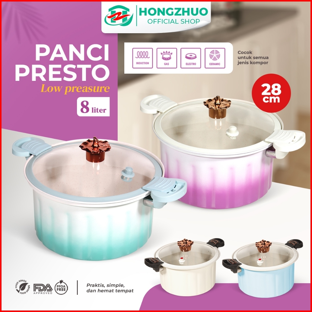 Hongzhuo Panci Presto Low Pressure Roman Cauldron Kapasitas 8 Liter Diameter 28cm Premium Quality Wajan Panci Presto Coa