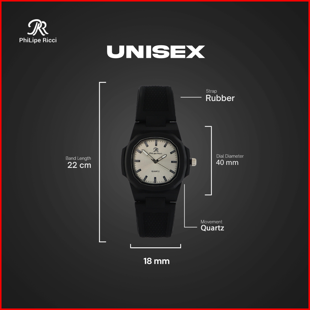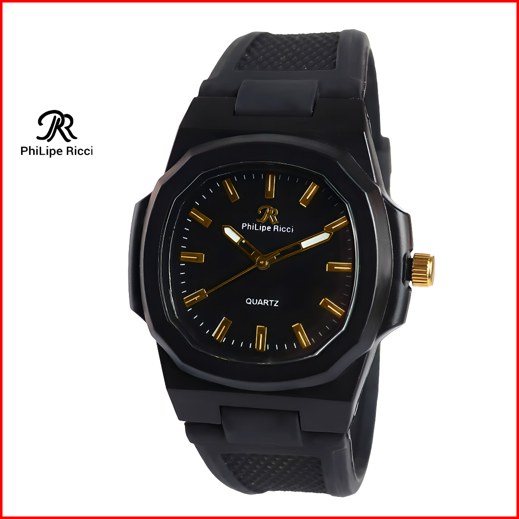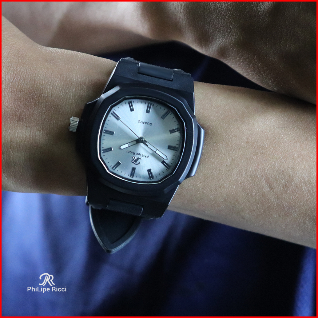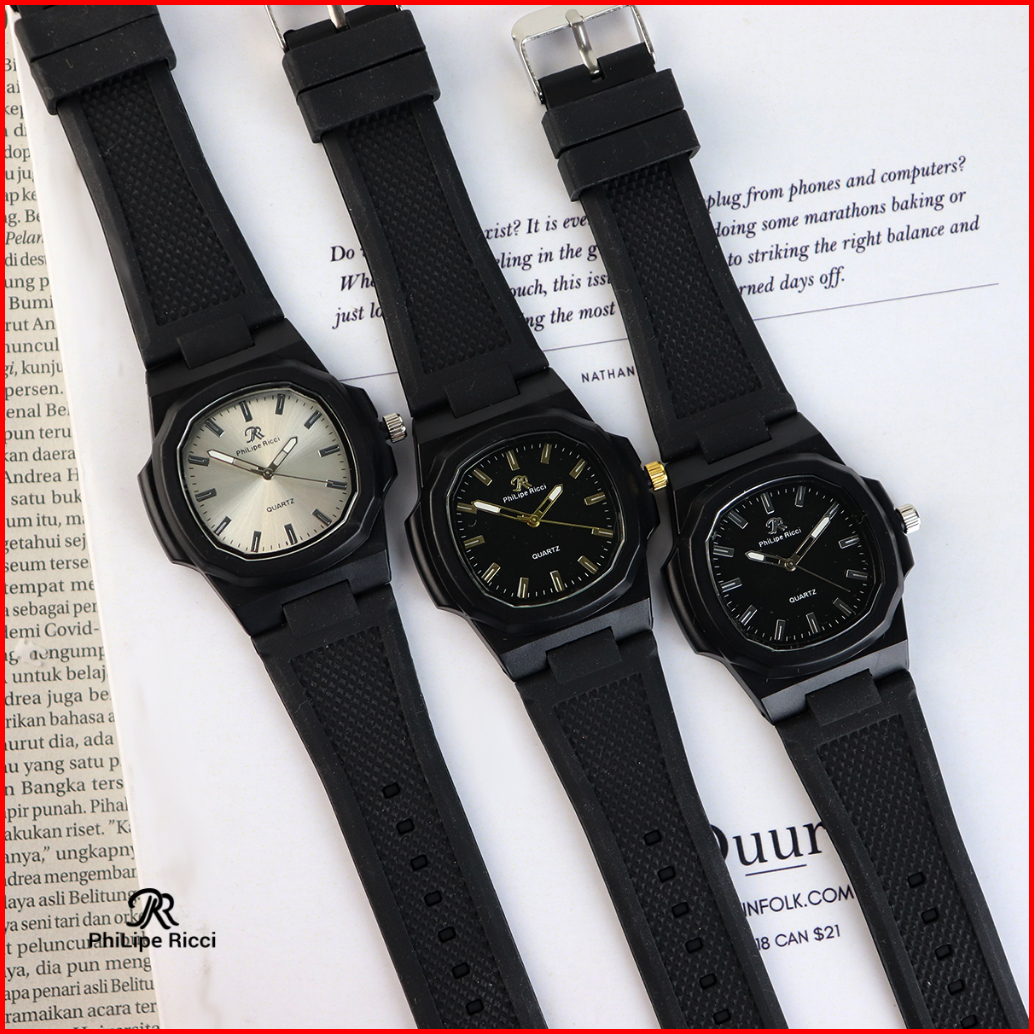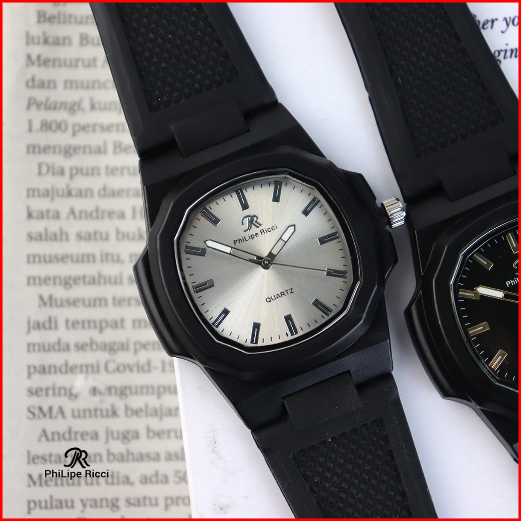 Philipe Ricci Jam Tangan Pria Wanita Unisex Analog Strap Tali Karet Dial Kotak 9065 Rubber Square Watches Free Box
