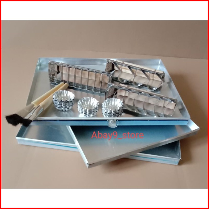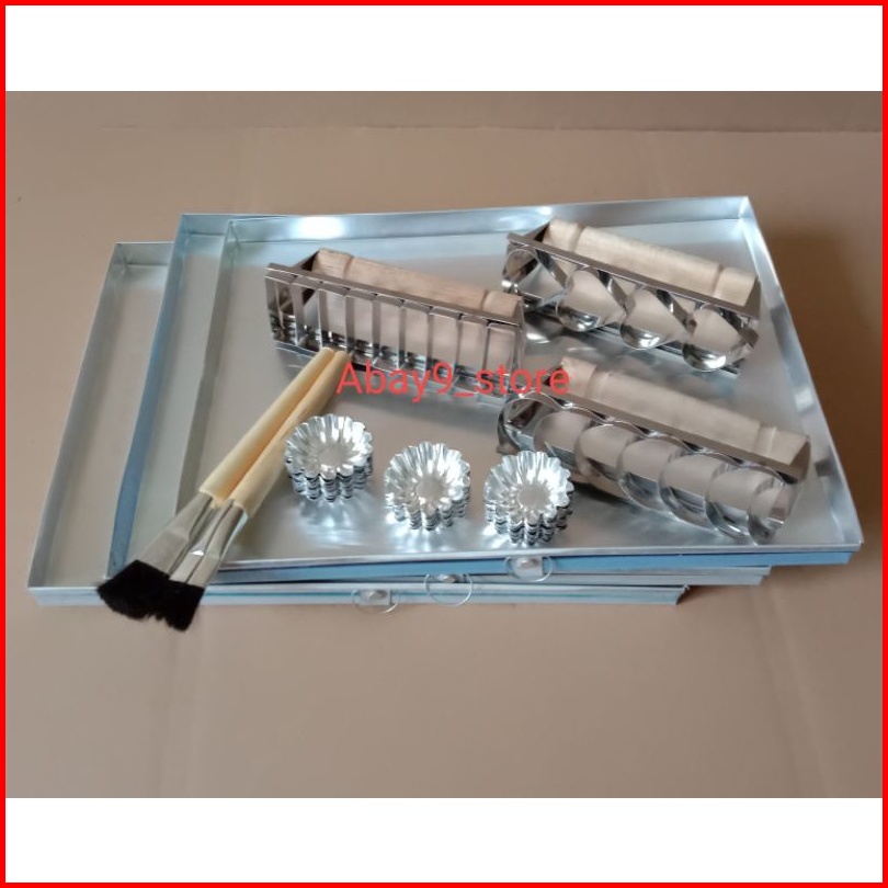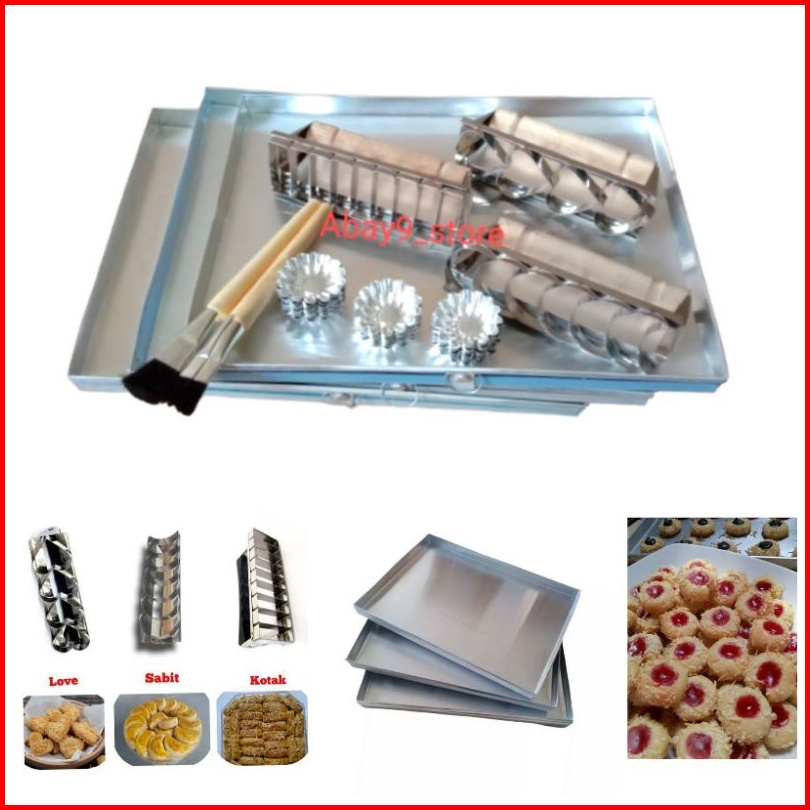 Loyang Kue Kering 3 Pcs Gratis Cetakan Castanggel Love Sabit Kotak Dan 40 Pcs Cetakan Nastar Daun Lengkap Dengan Kuas 2