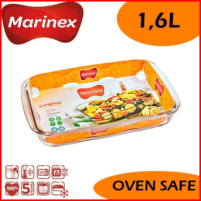 Marinex Loyang Kaca 1 6 Liter Small Rectangular - Loyang Kue - Loyang Saji - Loyang Segi Oven Bake - Loyang Microwave