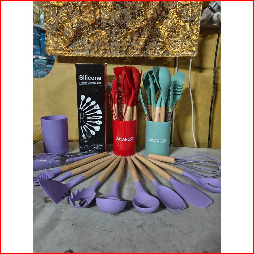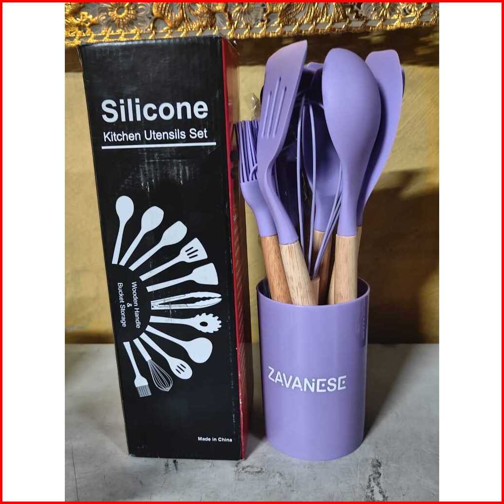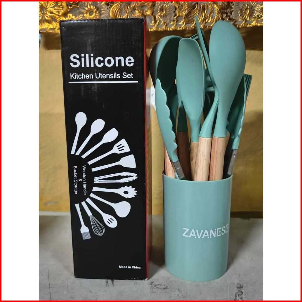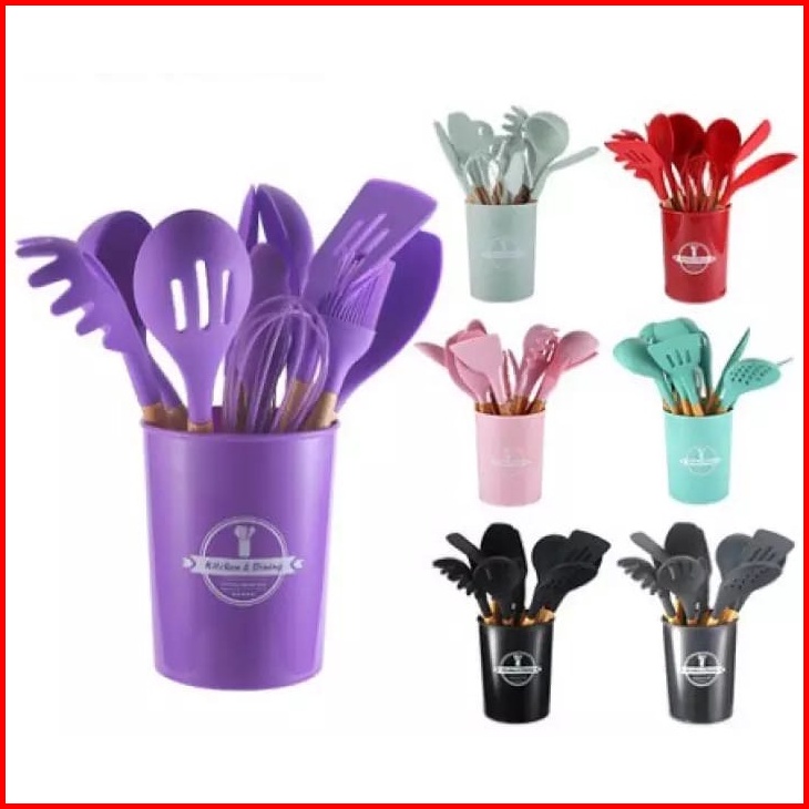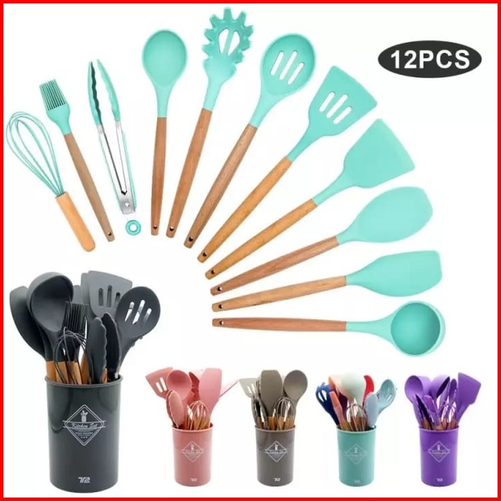 Spatula Set Silikon 12 In 1 Set Silicone Kitchen Set Utensil Spatula Cooking Bpa Free - Alat Masak Dapur Silikon Gagang