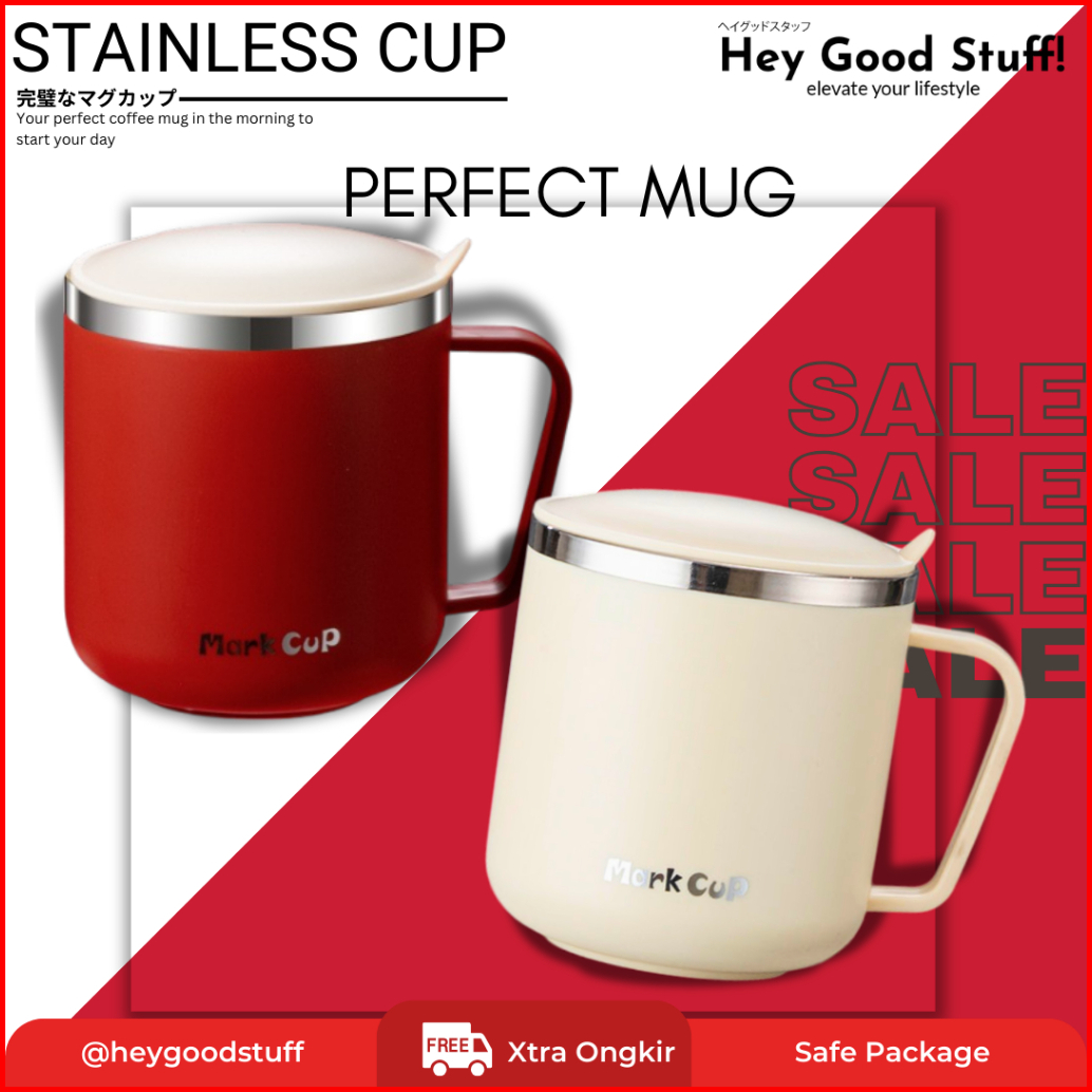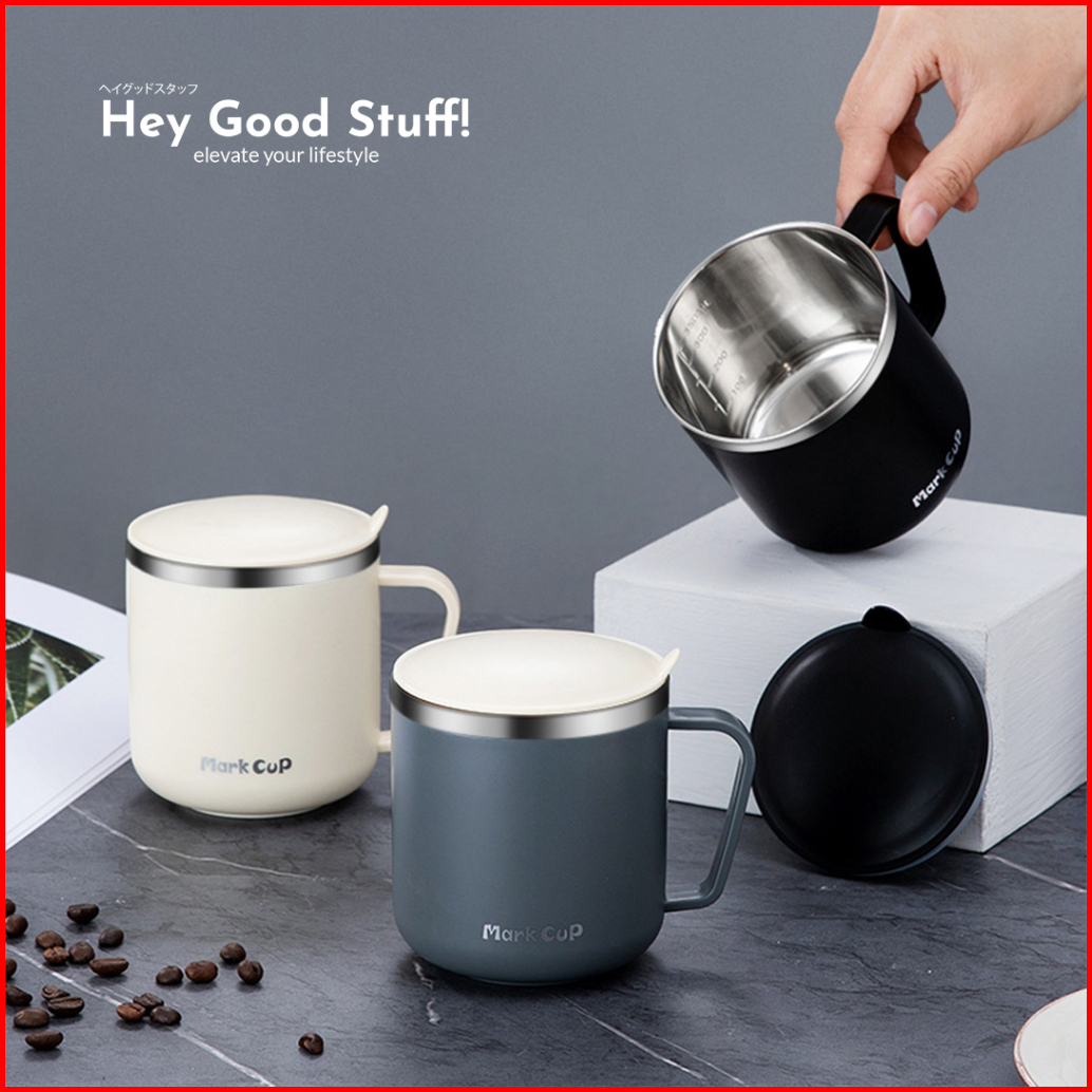 Mug Stainless Steel Aesthetic Kopi Teh Tahan Panas Sus 304 Anti Tumpah 400ml
