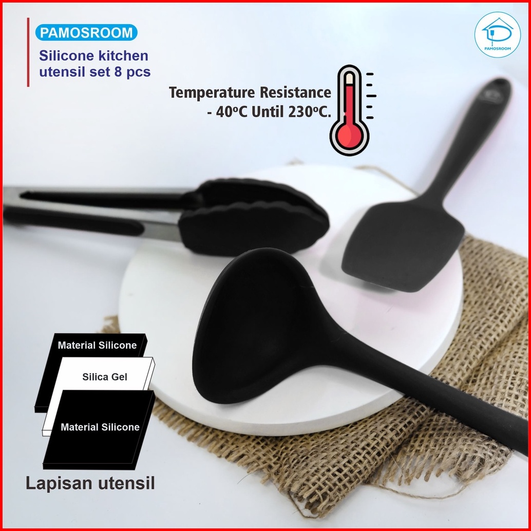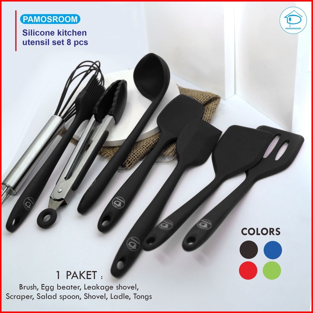 Pamosroom Baking Props 1set 8pcs Alat Masak Spatula Sutil Silikon Tahan Panas Silicone Kitchen Utensils 8pcs In 1set