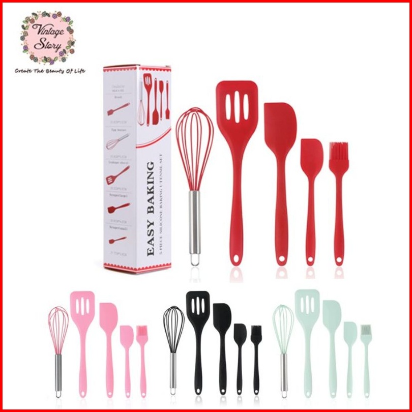 Set Spatula Peralatan Masak Sutil Silikon Non Stick Cooking Tools Isi 5 Pcs