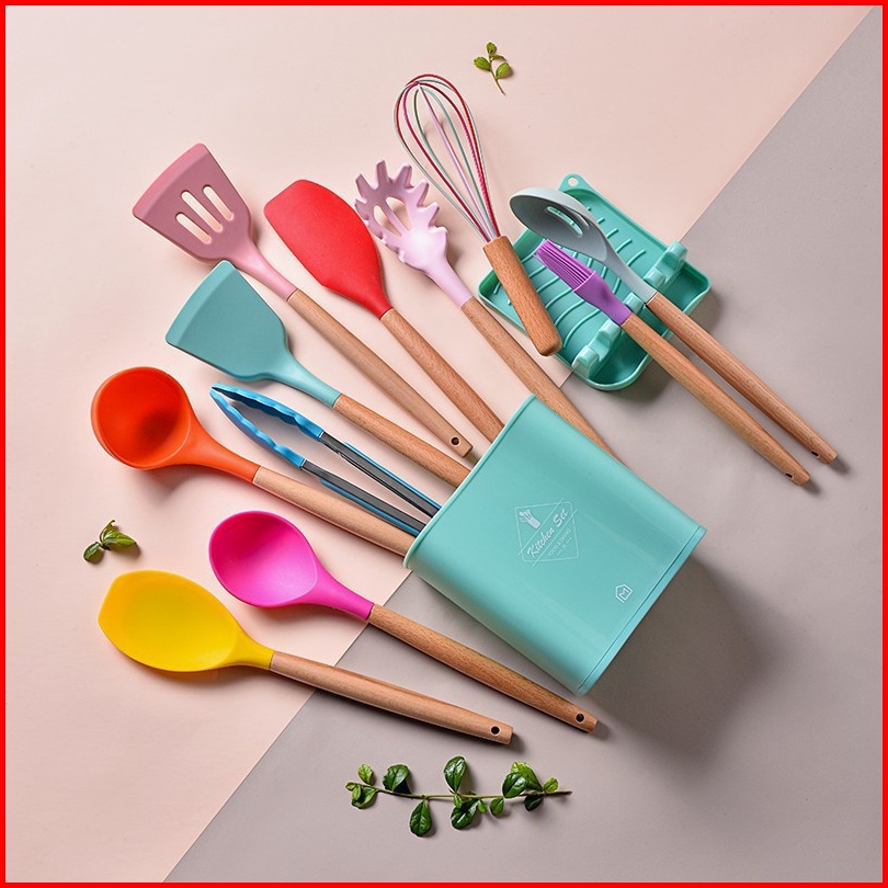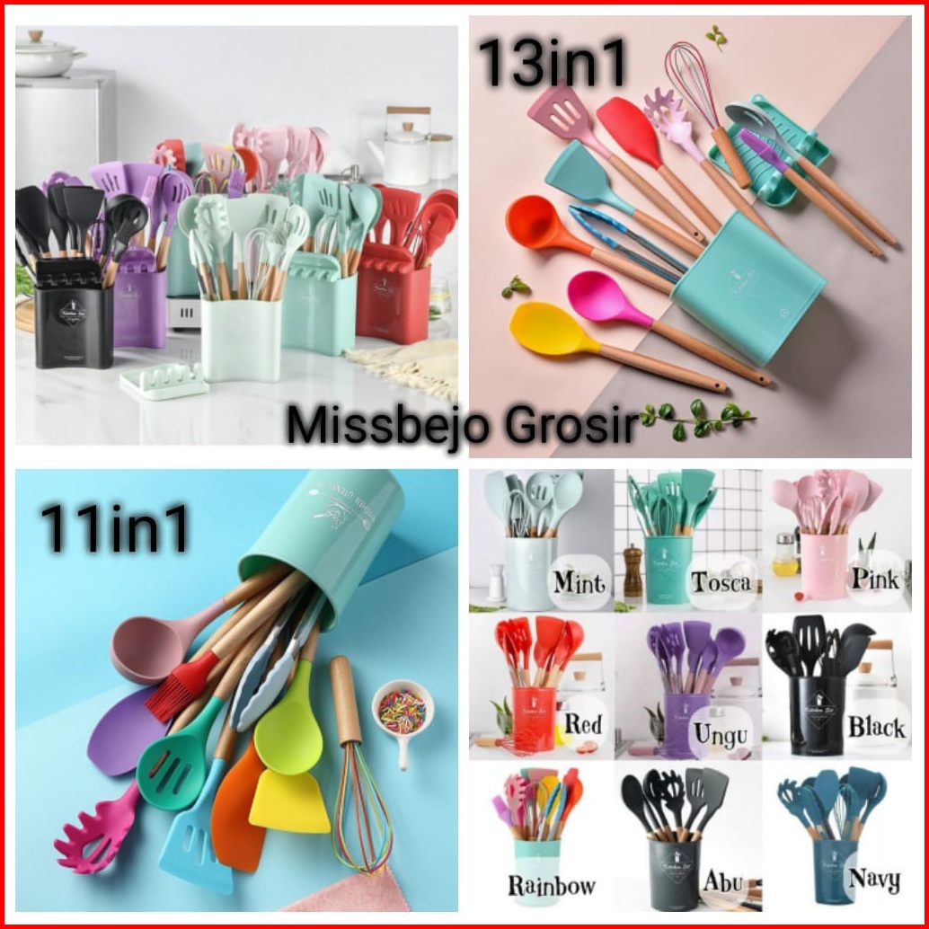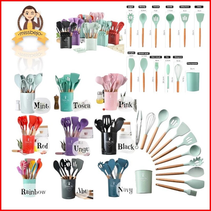 Set Peralatan Dapur Silikon Silicone Kitchen Utensil Spatula 12 13 In 1- Missbejo