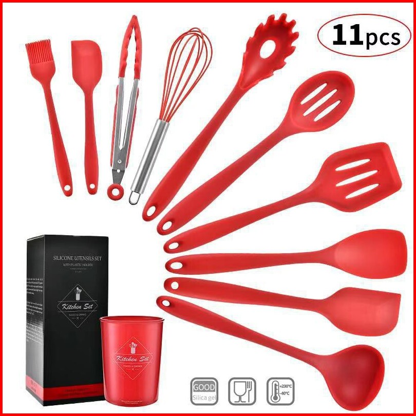 11in1 Set Stand Silicone Kitchen Utensil Set Spatula Cooking Set Pefe Pfoa Bpa-free