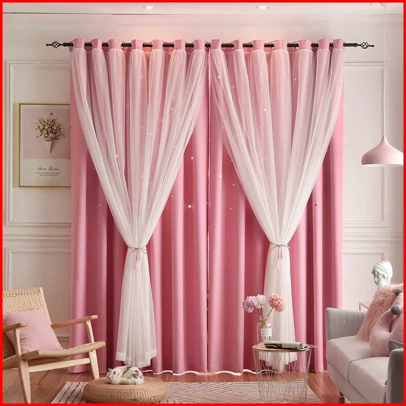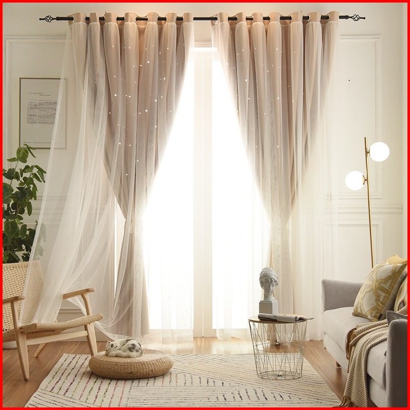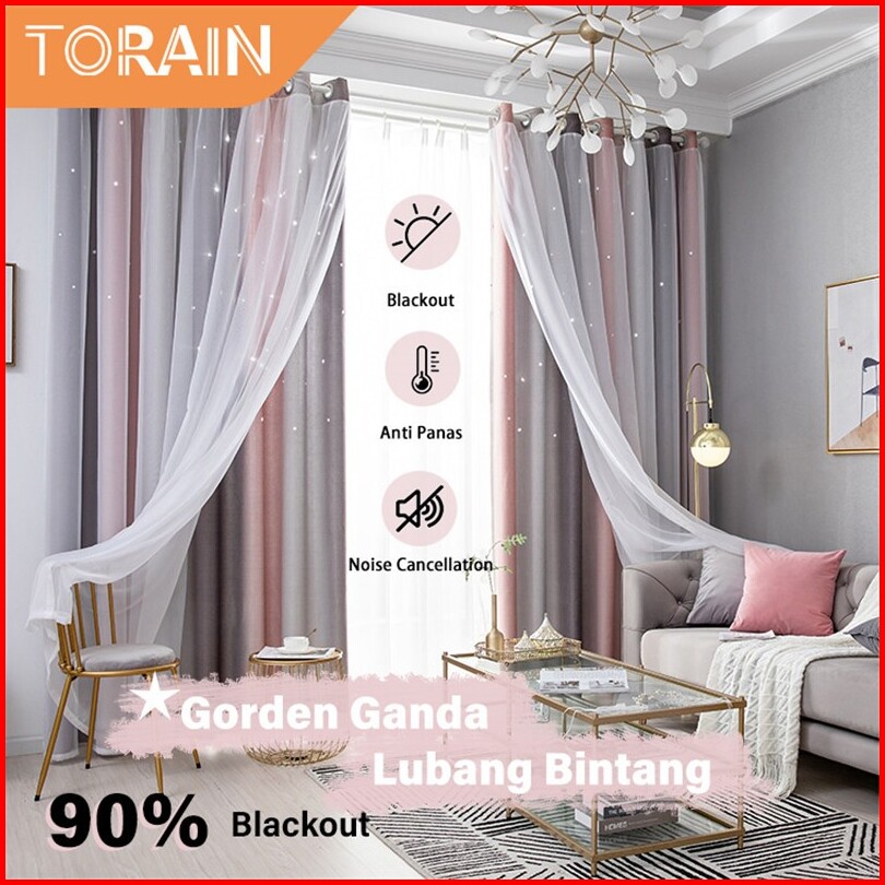 Torain Gorden Ganda Lubang Bintang Kain Vitrase 2 In 1 Blackout Gorden Jendela Kamar