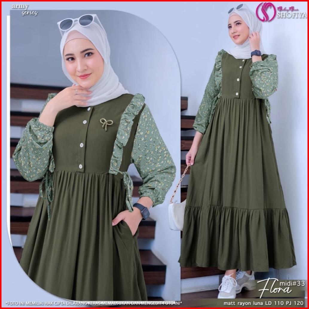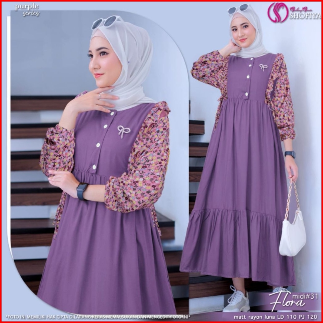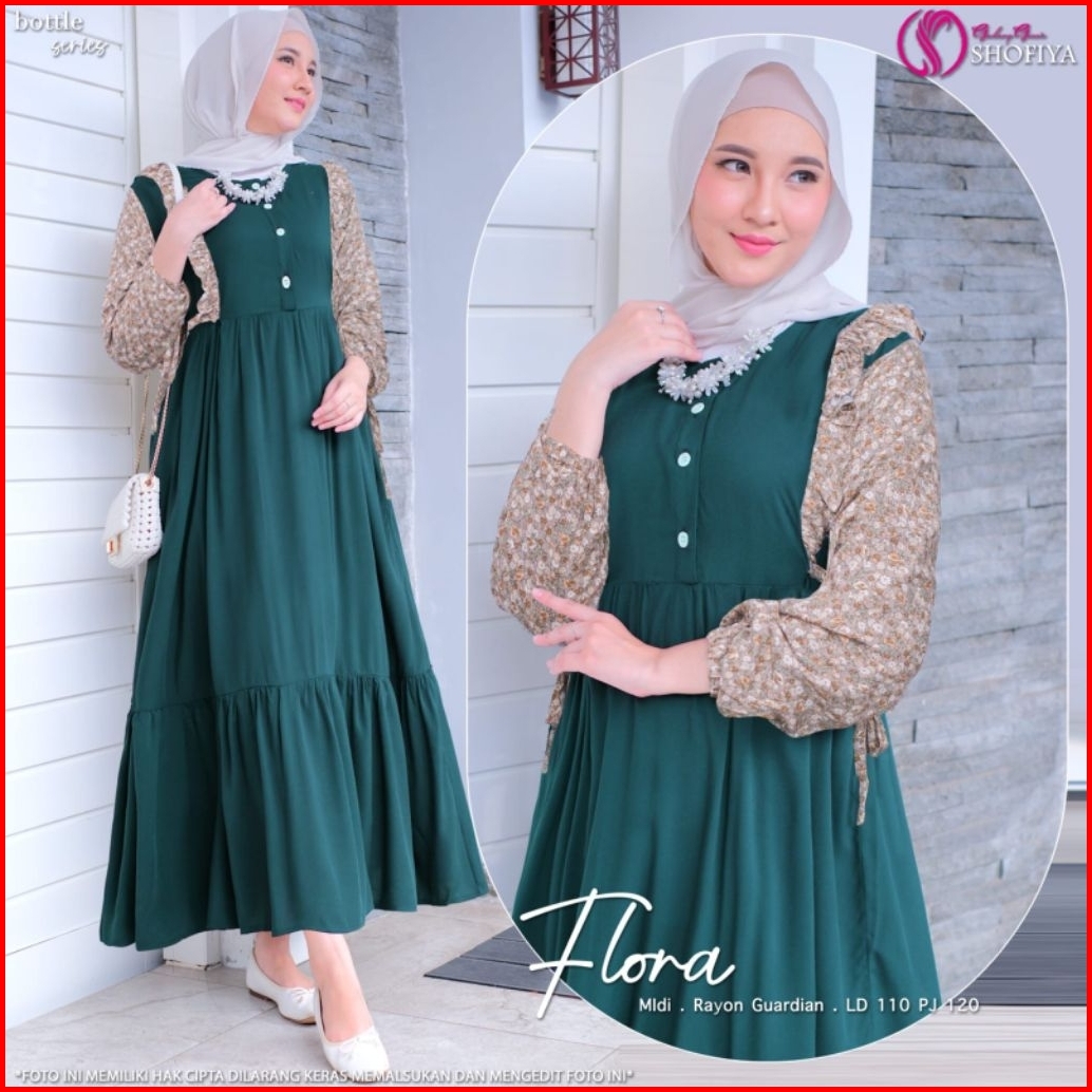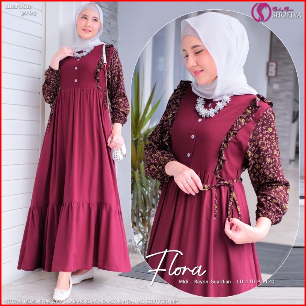 Gamis Rayon Premium Dress Wanita Motif Bunga Ld 110 Flora Ori By Shofiya