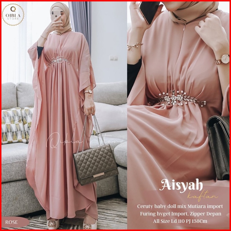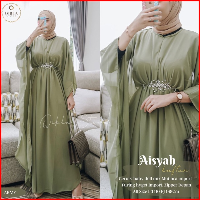 Aisyah Kaftan Mutiara - Gamis Kaftan Terbaru - Gamis Modern - Kaftan Lebaran 2023 Mewah - Kaftan Ceruty Premium - Gamis