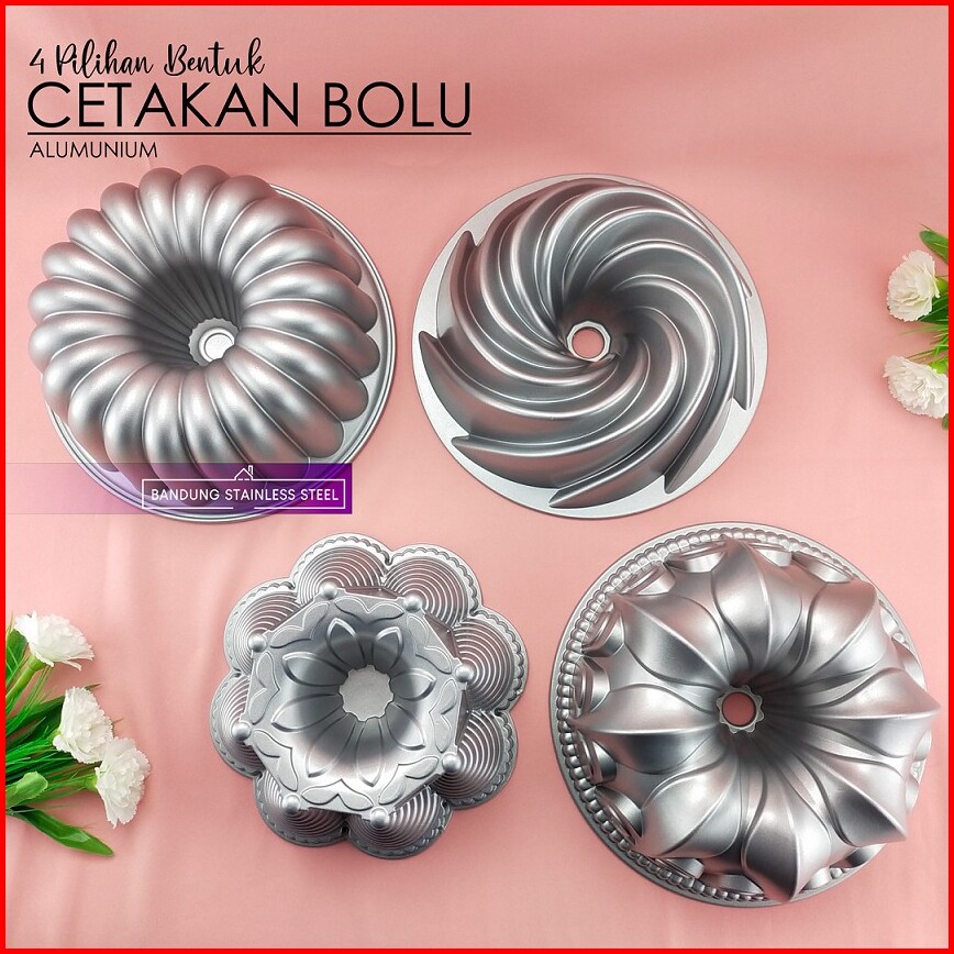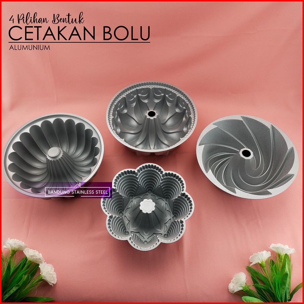 Loyang Cetakan Bolu Kue Basah 24 Cm Anti Lengket Allumunium Bentuk Cantik 4 Model Lebaran
