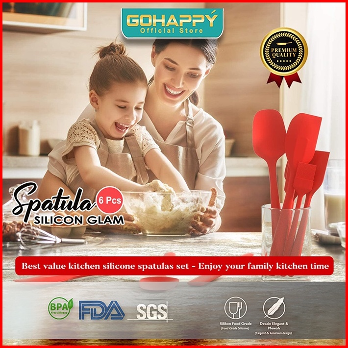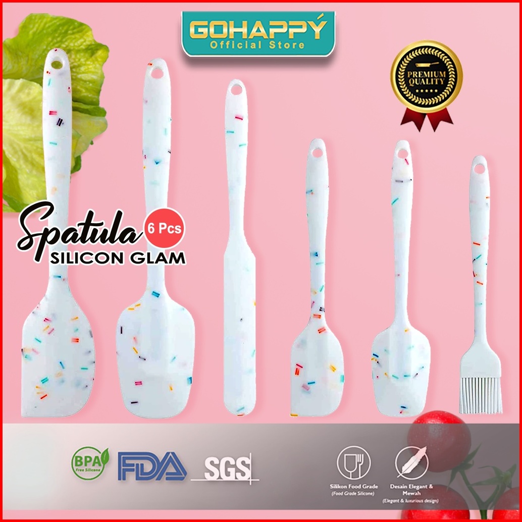 Spatula Glam Set 6 Pcs Silicone Premium - Sendok Masak Dapur Sutil Silikon 2027 Grill Pan Baking