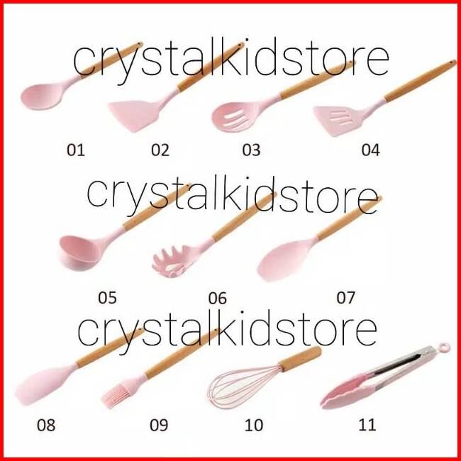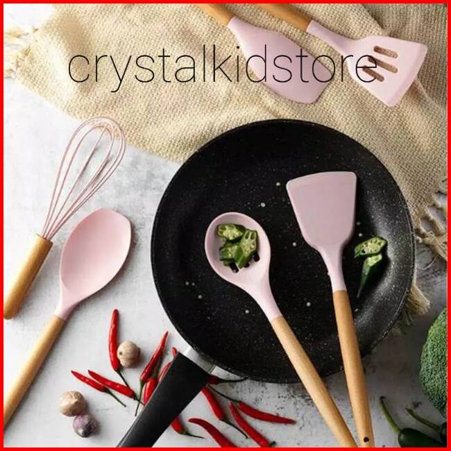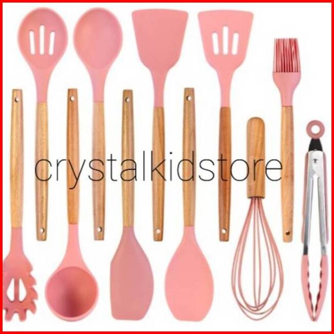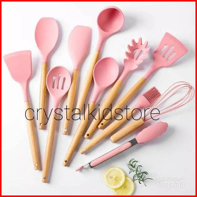 Alat Masak Silikon Silicone Set 11pcs Soft Pink Kitchen Baking Cooking Utensil Turner Sutil Sodet Spatula