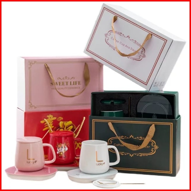 Gelas Set Keramik Lengkap Dengan Alat Pemanas Cangkir Set Keramik Untuk Hadiah Kado Box Eksklusif
