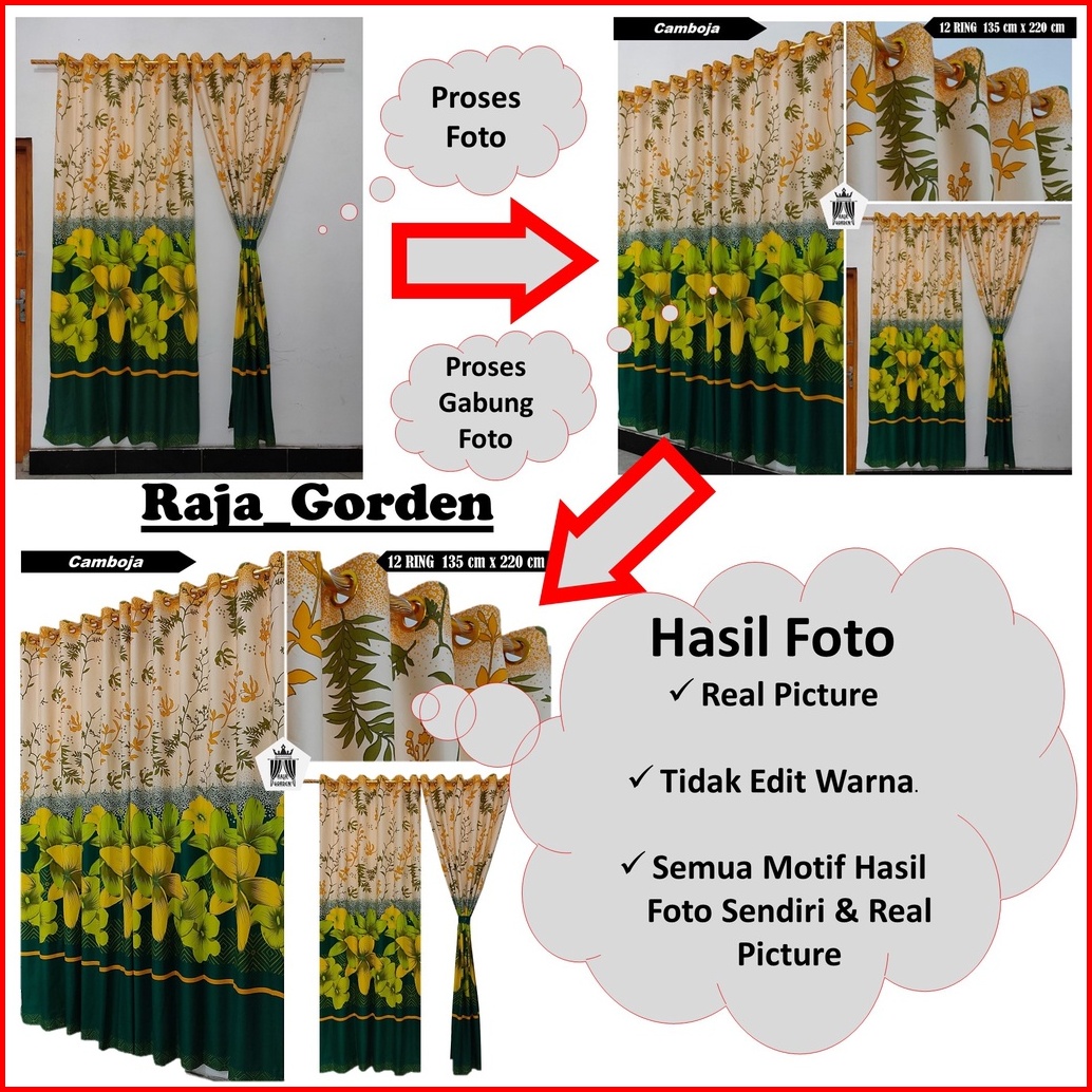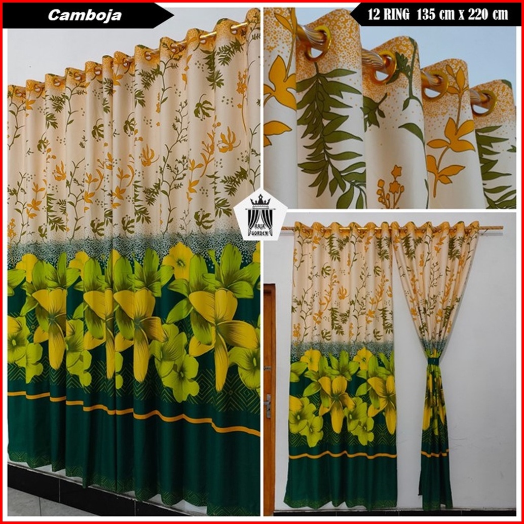 Tirai Gorden Hordeng Pintu Jendela Kamar Smokring 12 Ring Warna Hijau 135 X 220 Cm Minimalis
