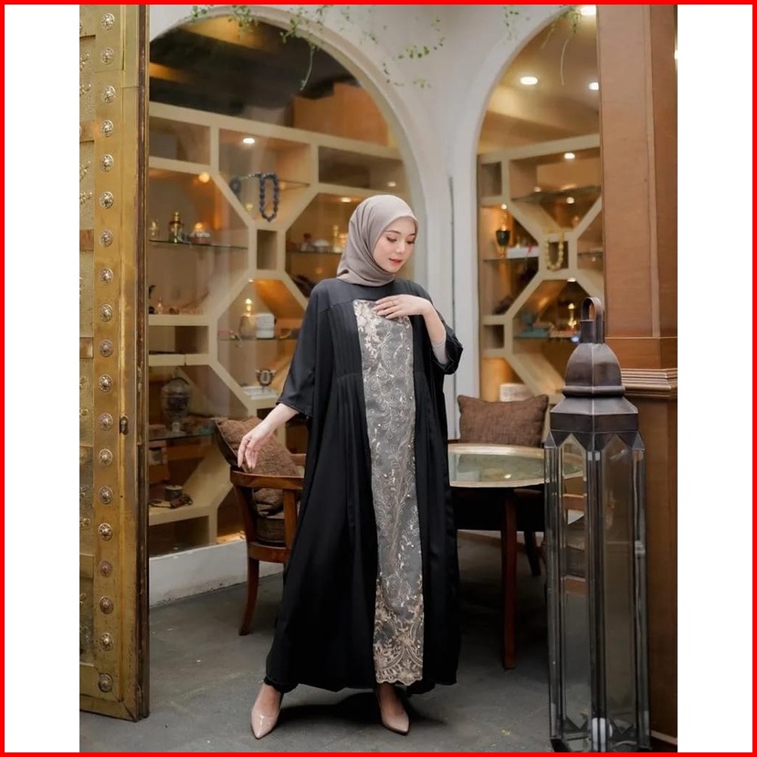 Zazira Abaya Dress Kondangan Kekinian Abaya Brukat Mewah Kaftan Simple Baju Abaya Lebaran
