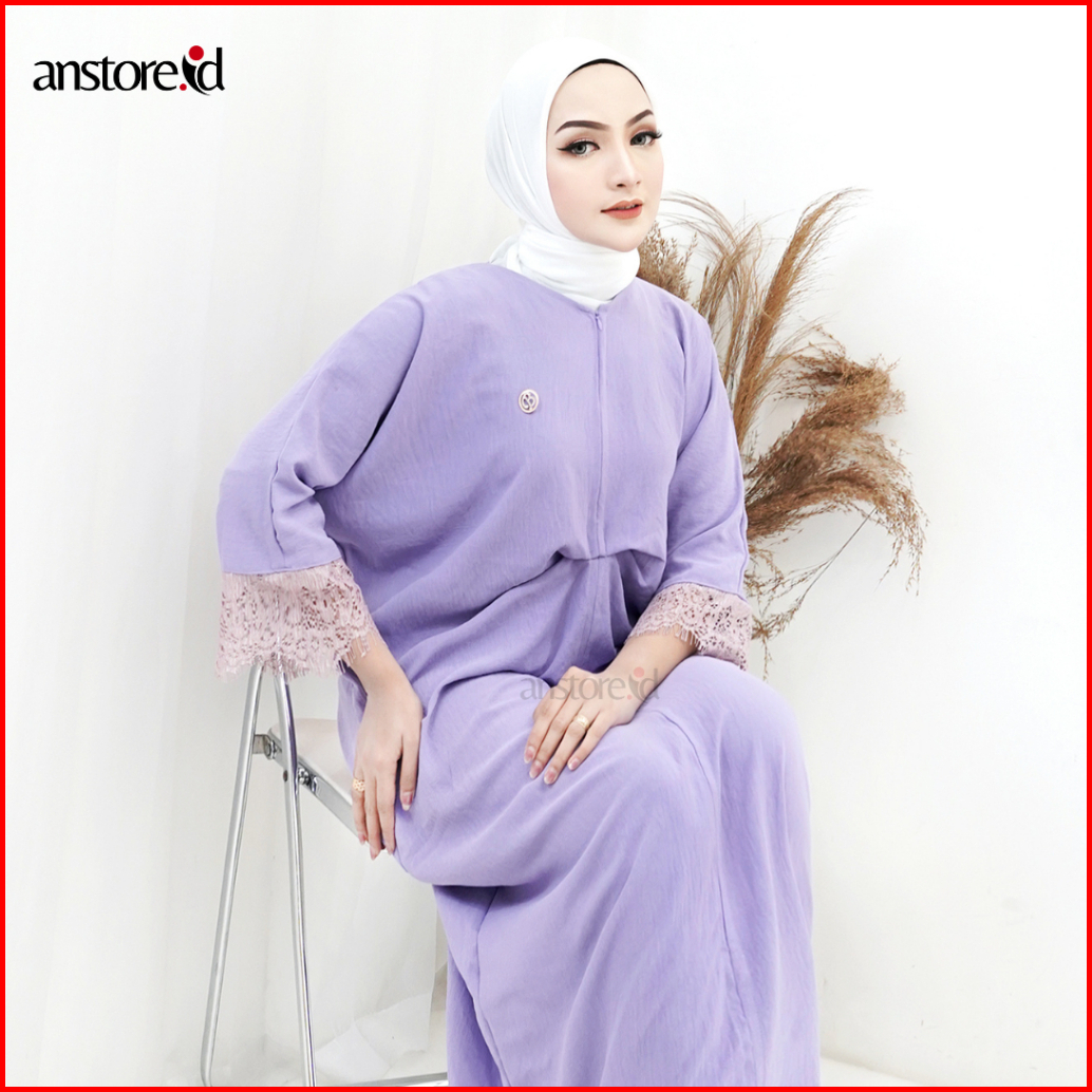 Anstore - Zea Raya Kaftan Crinkle Mix Brukat Renda Bahan Crinkle Airflow Ukuran Jumbo