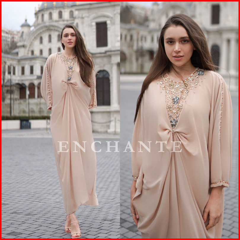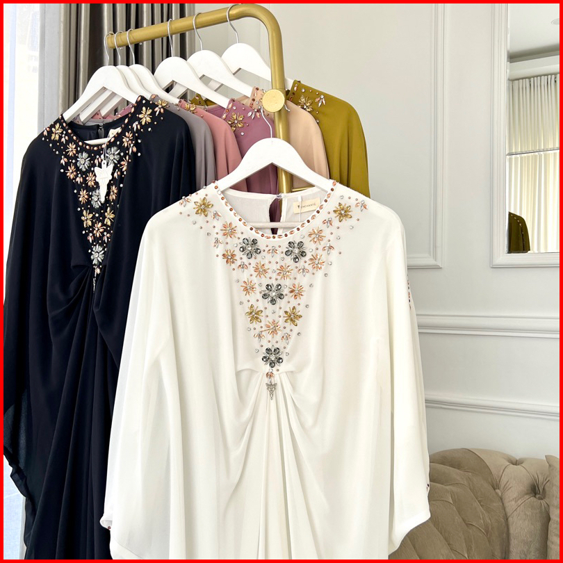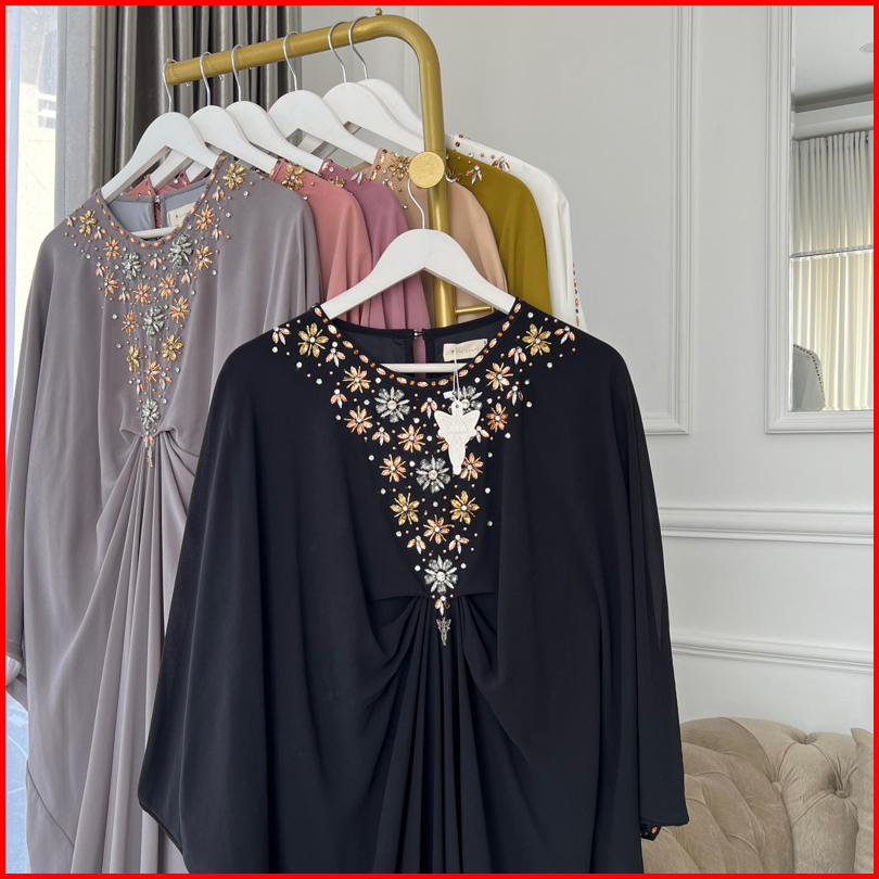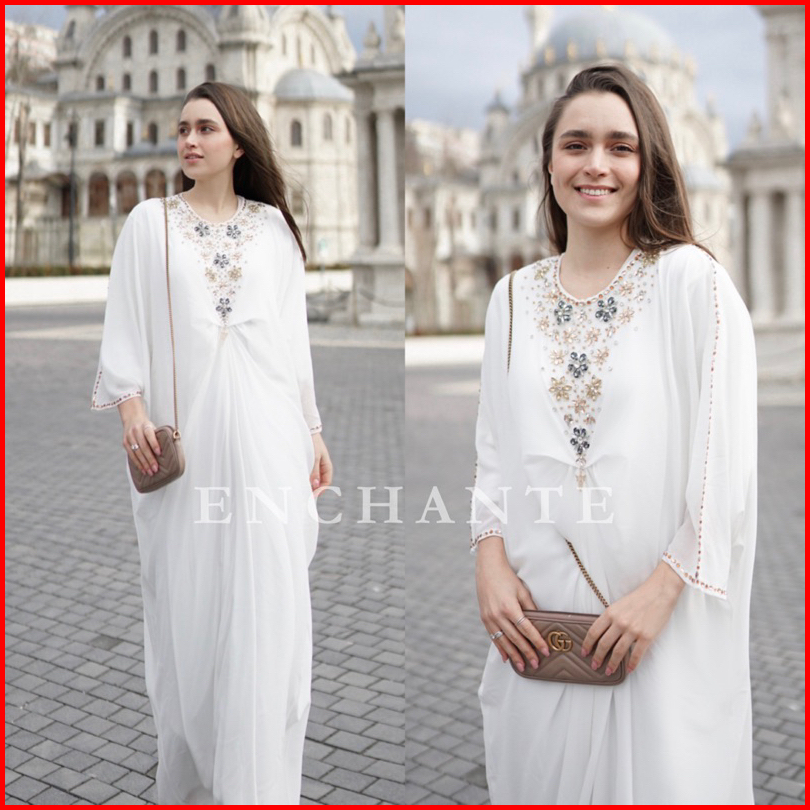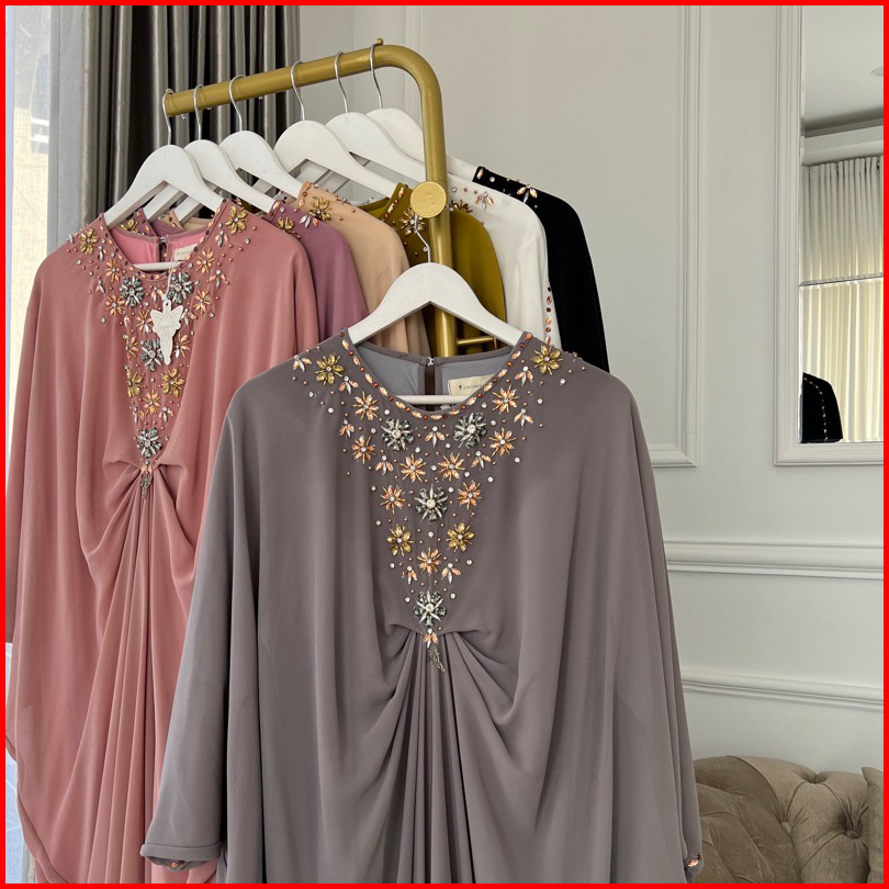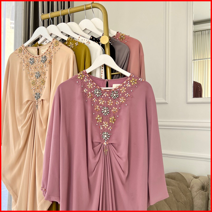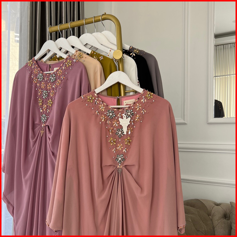Xena Caftan Brand Enchante - Plain Premium Beads Kaftan High End Luxury Lebaran Kondangan