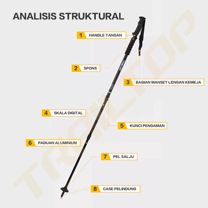 Trekking Pole/Tongkat Gunung/Hiking TrailTop Paduan Aluminium 65-135cm Dapat Diatur Sesuka Hati