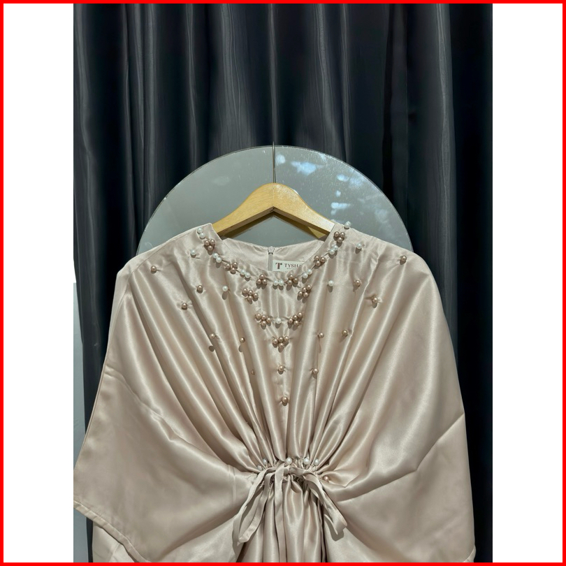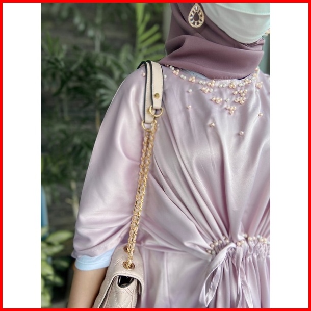 Regina Silk Satin Kaftan Baju Dress Wanita Buat Lebaran Bahan Premium Motif
