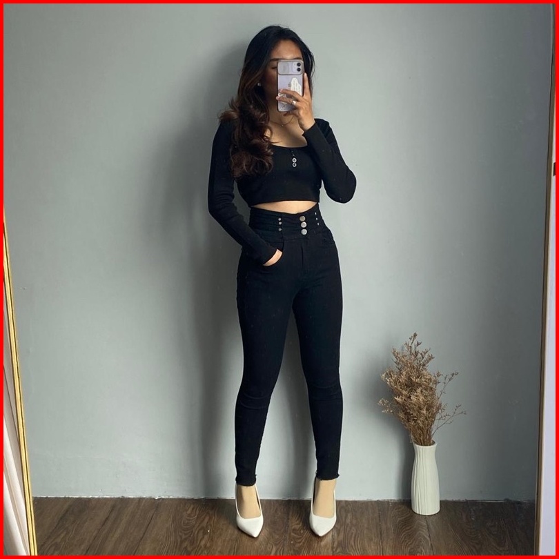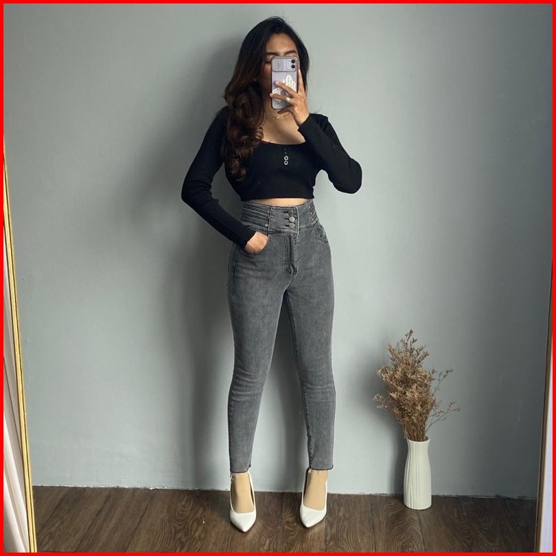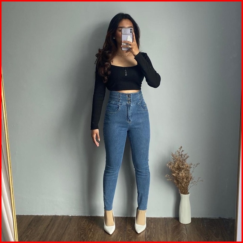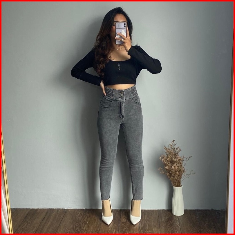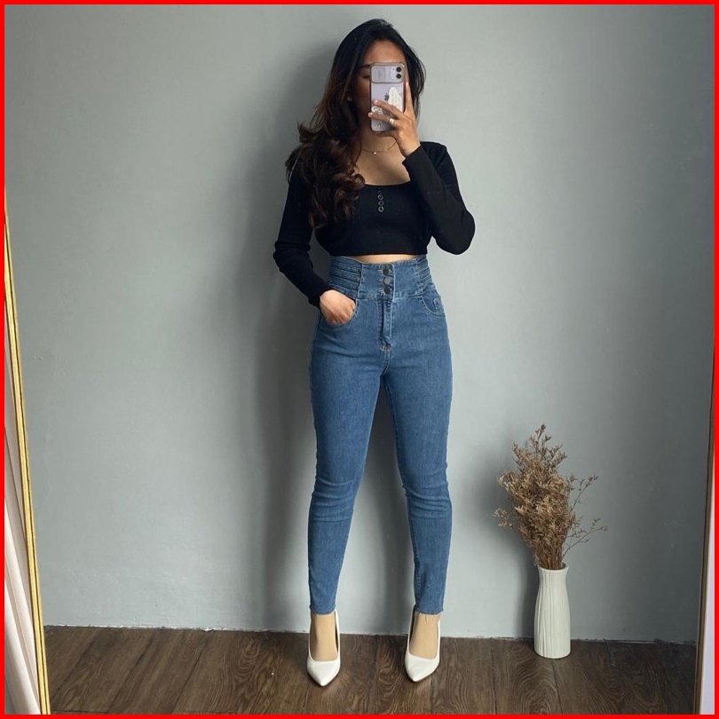 Luxe.dlabel - D73 Jeans Celana Panjang Highwaist Wanita Jeans Premium Jeans Wanita Polos Ripped Jeans High Waist Jeans W