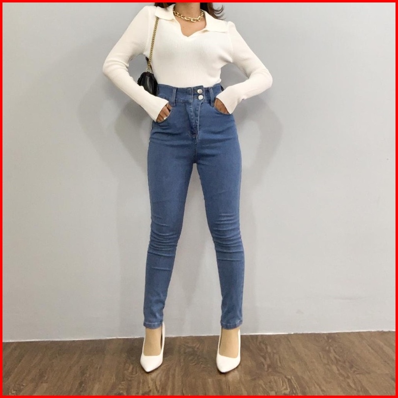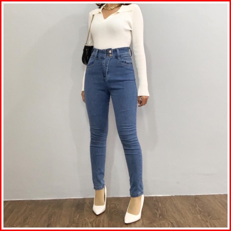 Luxe.dlabel - E16 Jeans Celana Panjang Highwaist Wanita Jeans Premium Jeans Wanita Polos Ripped Jeans High Waist Jeans W