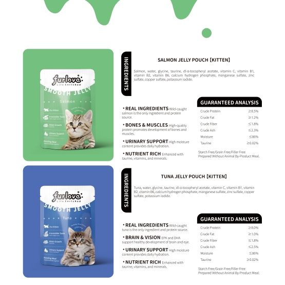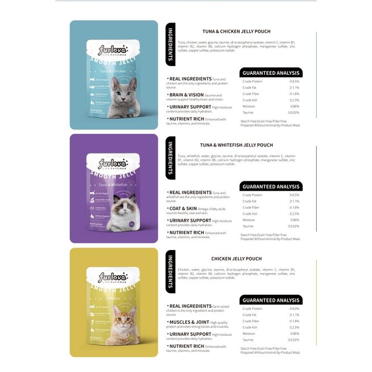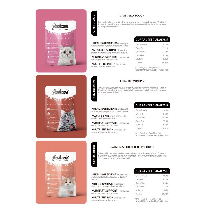 Crab, Salmon&chicken, Salmon, Tuna-kitten, Tuna, Tuna&chicken, Tuna&Whitefish , chicken