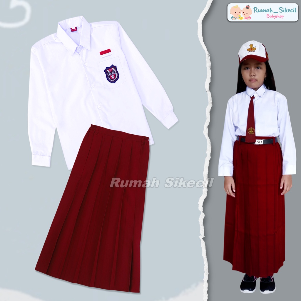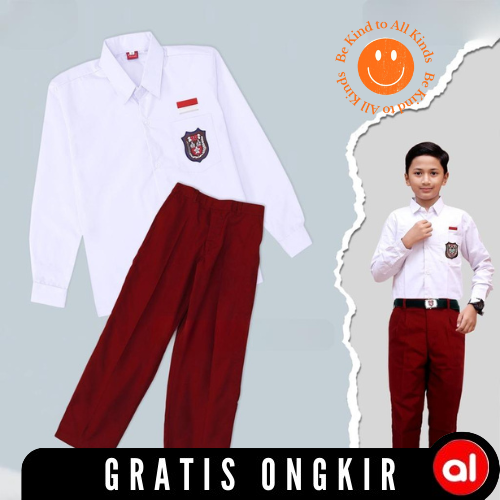 SETELAN BAJU SERAGAM SEKOLAH SD MERAH PUTIH BAJU PANJANG CELANA PANJANG LAKI SERAGAM SEKOLAH SD