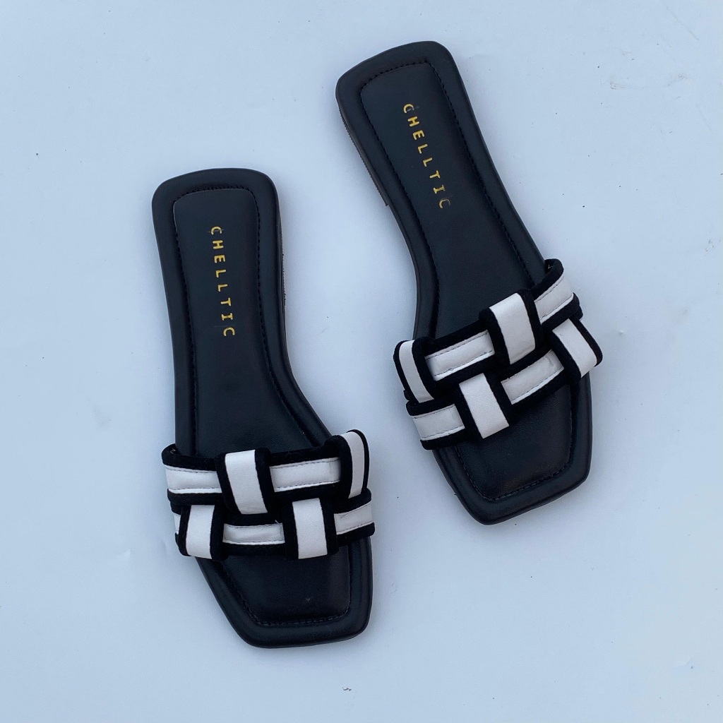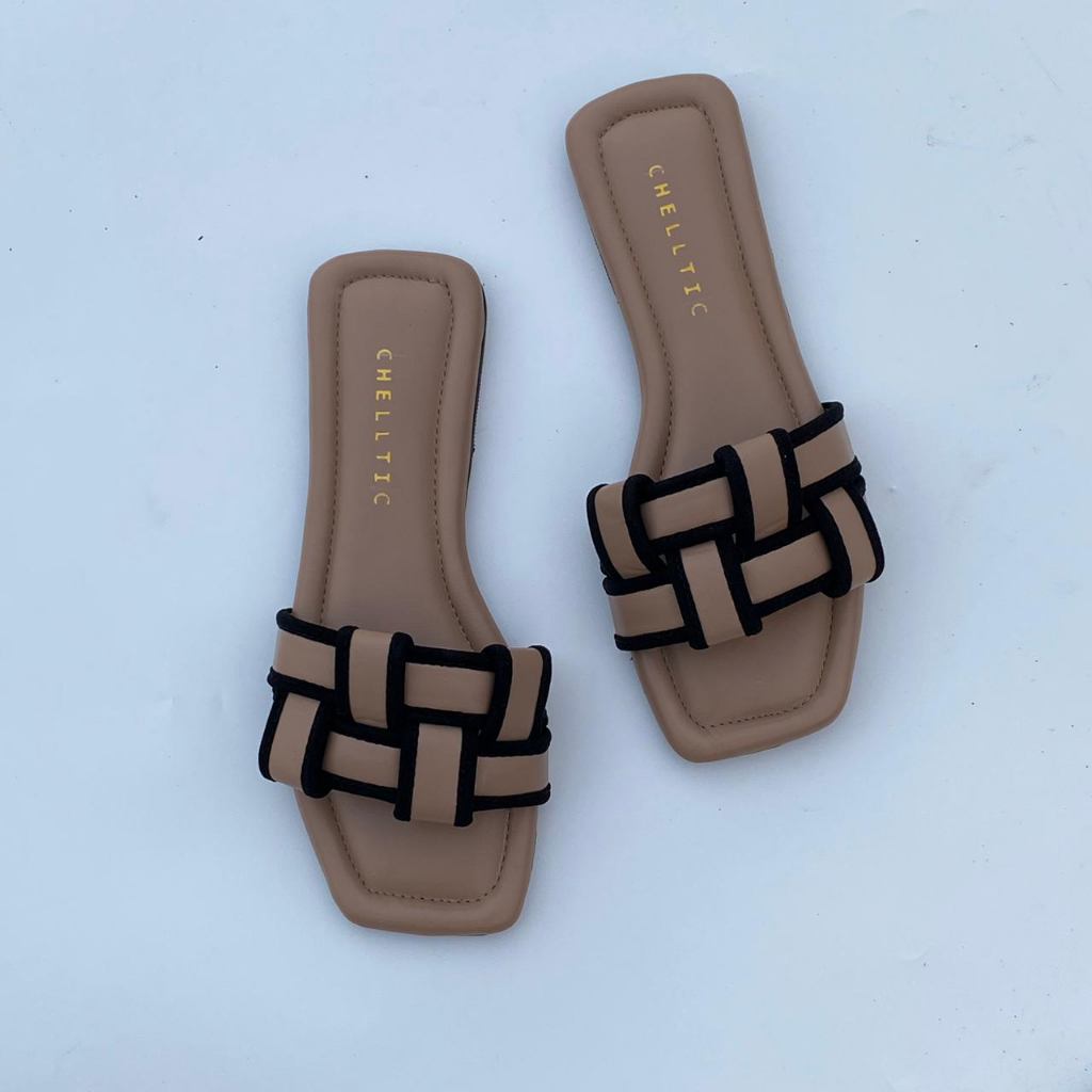 Galaxy Sandal Selop Flat Teplek Wanita Terbaru Sendal Rumah Casual Selop Slip On Cewek Motif Anyam Trendy Nyaman Modis D