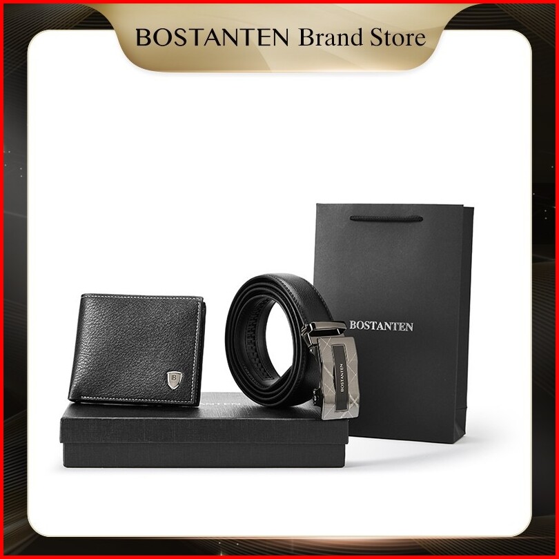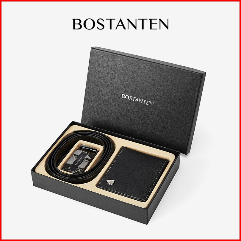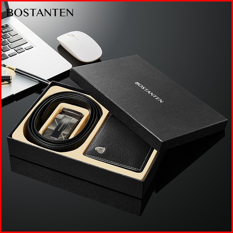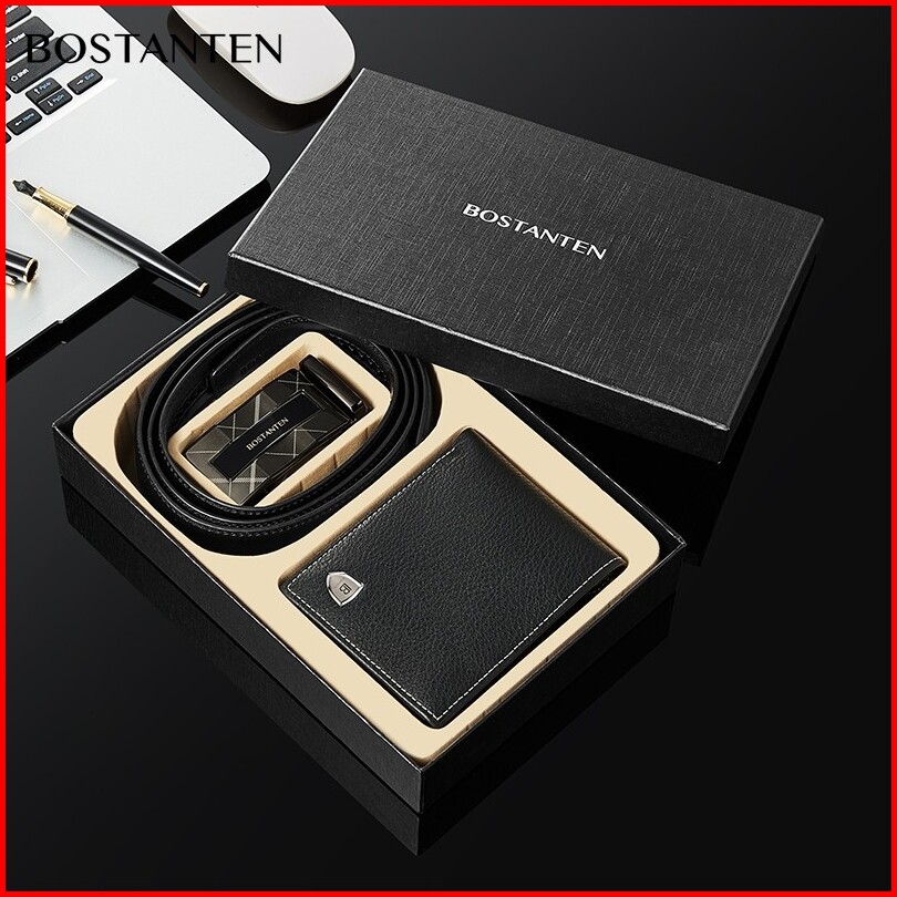 Bostanten Set Kombinasi Dompet Pu Dan Sabuk Kulit Sapi Pria Kotak Tas Kado