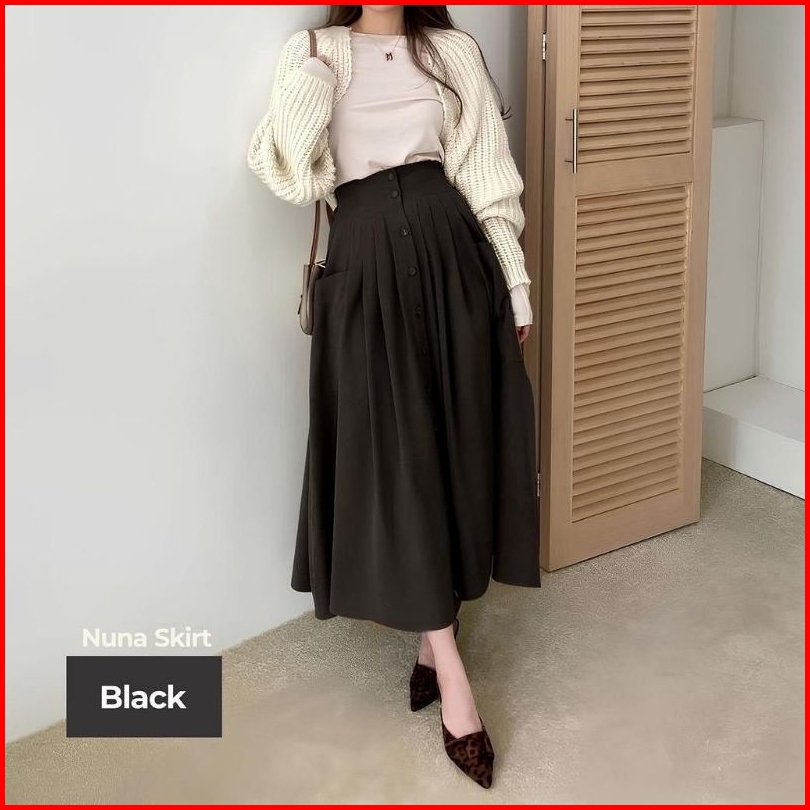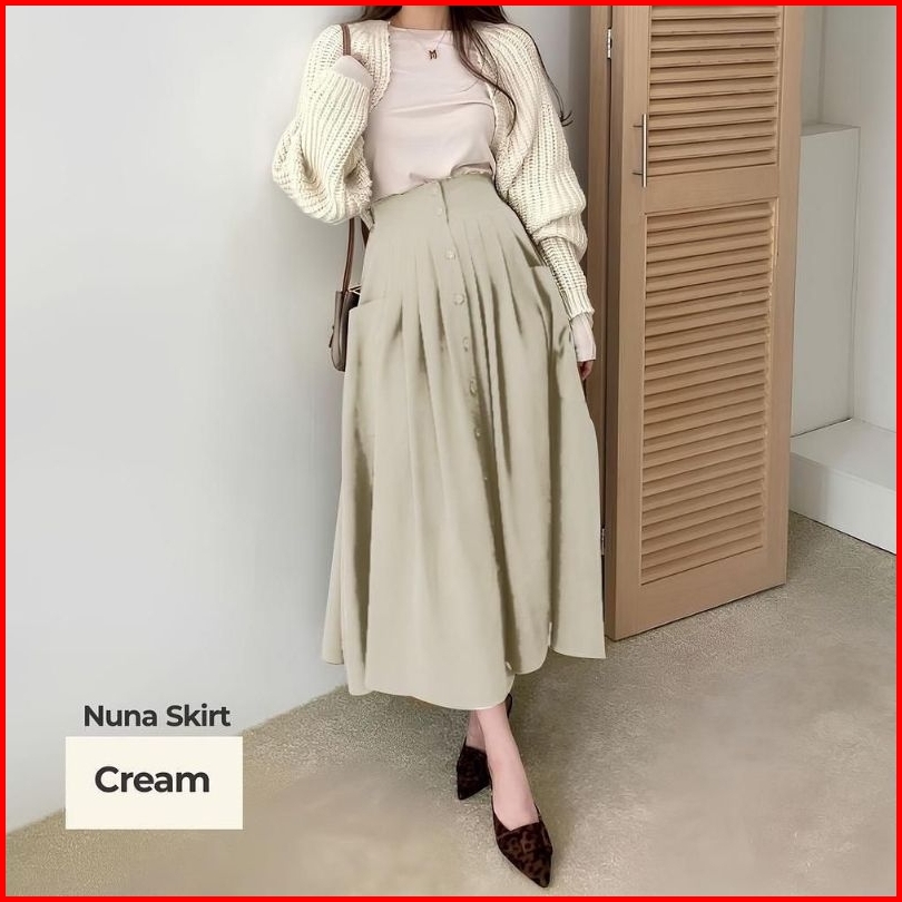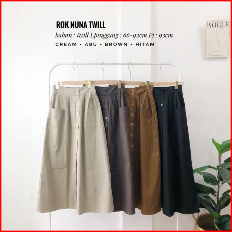Rok Nuna Skirt Korean Style Bahan Cotton Twill Premium Rok Panjang Wanita Muat Bb Standart Dan Jumbo