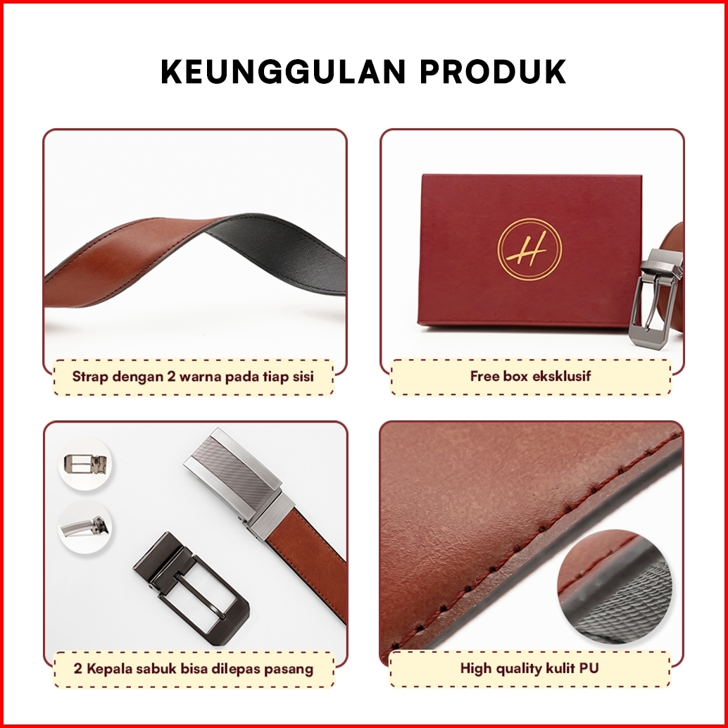 Hody - Ikat Pinggang Pria 2 In 1 Ikat Pinggang 4 In 1 Ikat Pinggang Pria Kulit Sabuk Pria Buckle Putar - Gavin Belt