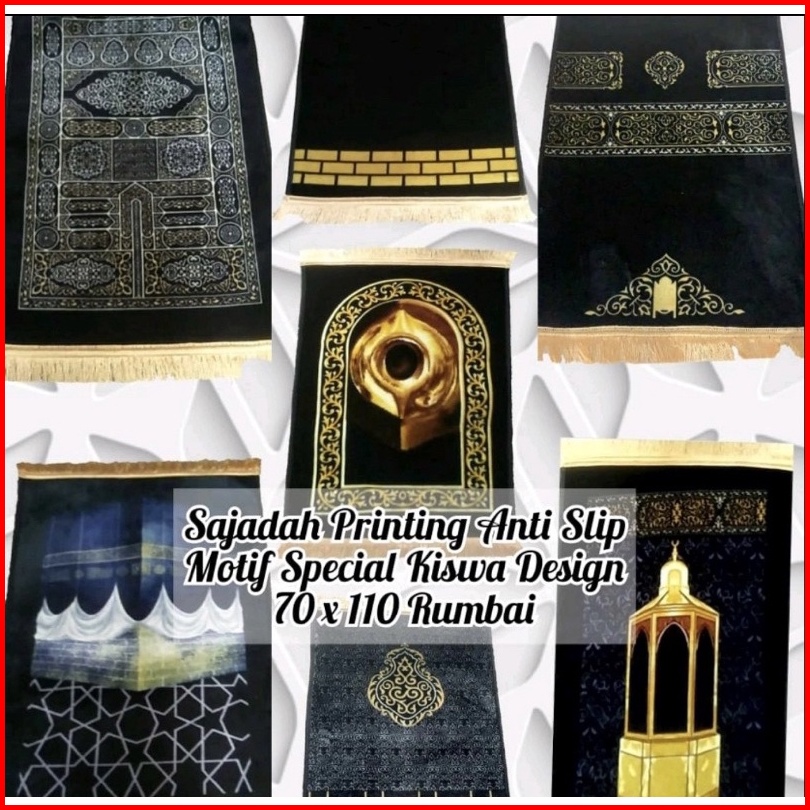 Sajadah Tebal Anti Slip Motif Kiswah Ukuran Besar