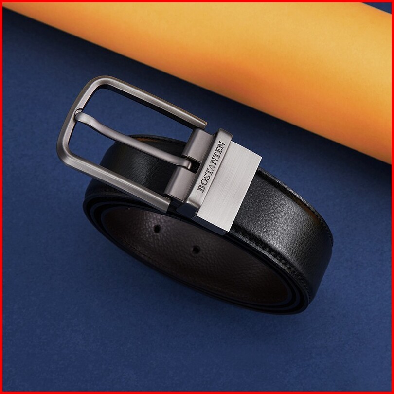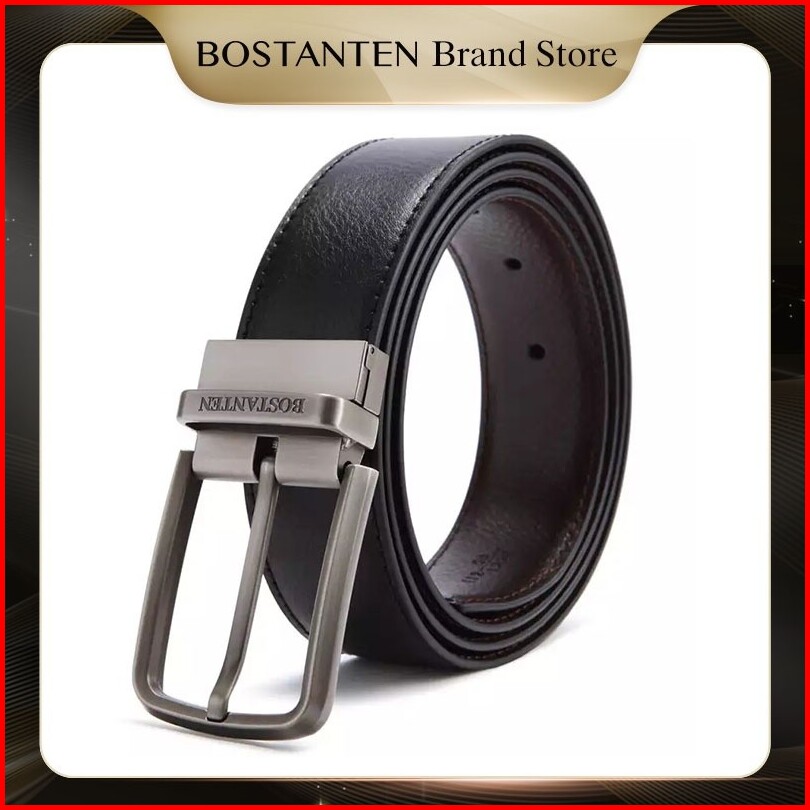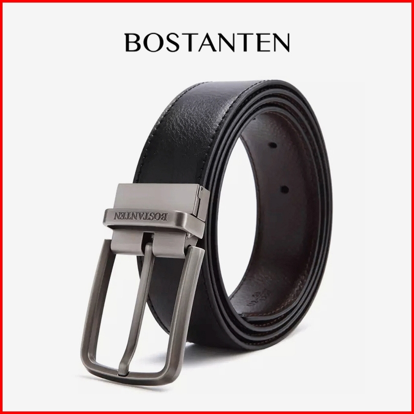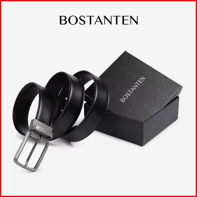 Bostanten Sabuk Ikat Pinggang Pria Warna Hitam Bahan Kulit Sapi Asli