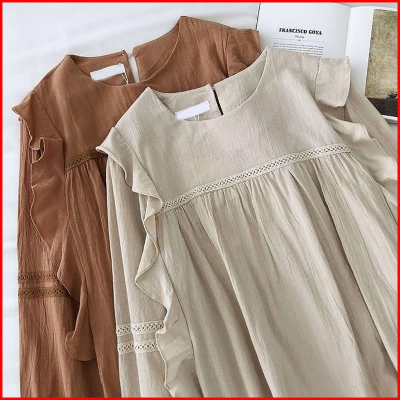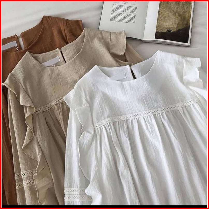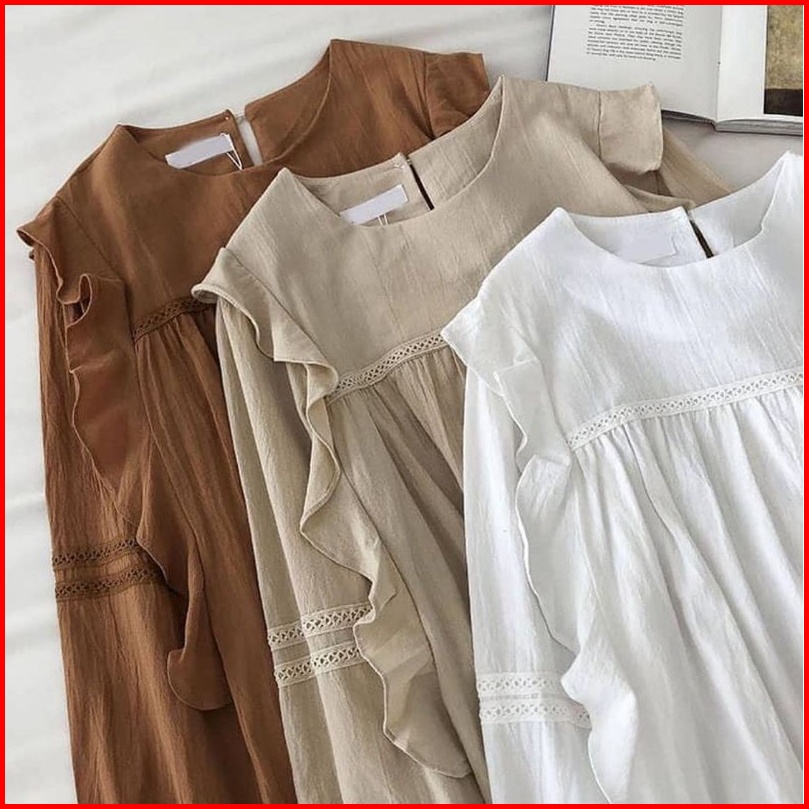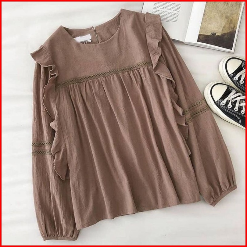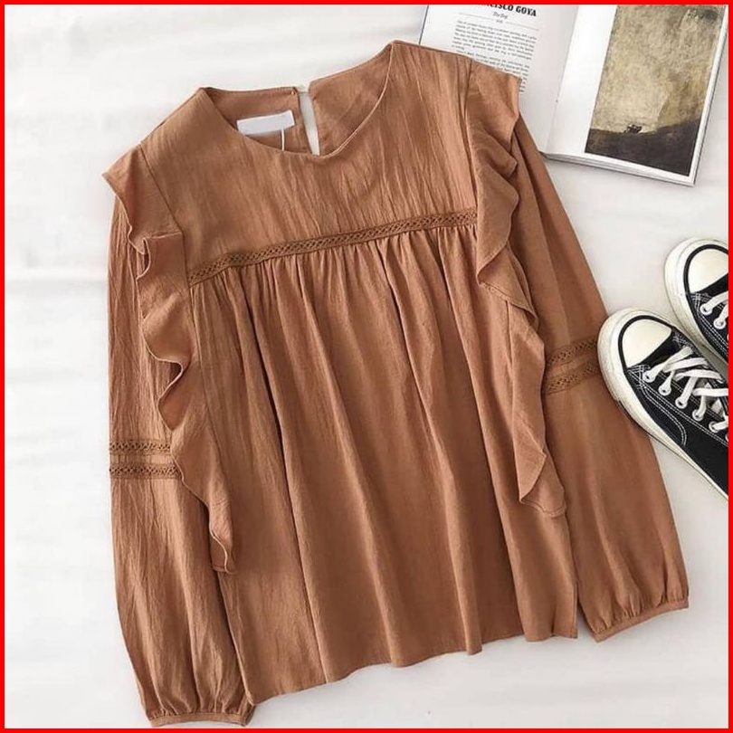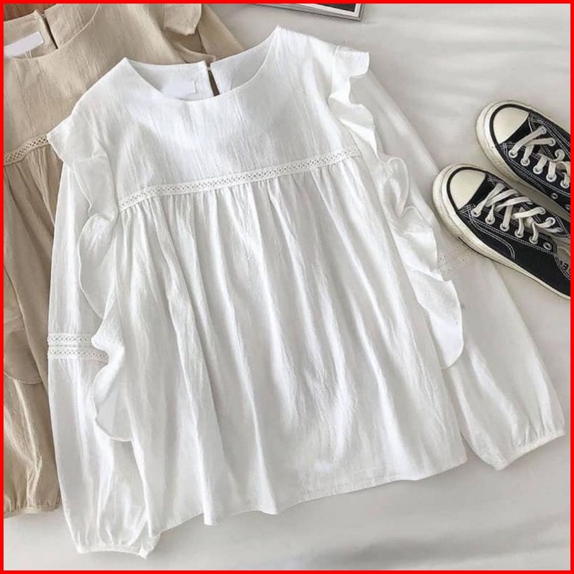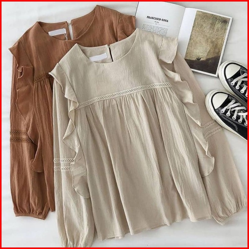 Saka Blouse Atasan Wanita Korean Style Crinkle Import Mix Lace Import