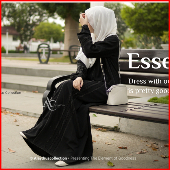 Alaydrus Collection Abaya Hitam Turkey Gamis Syari Jihan Muslimah Bahan Jetblack Kombinasi Mata