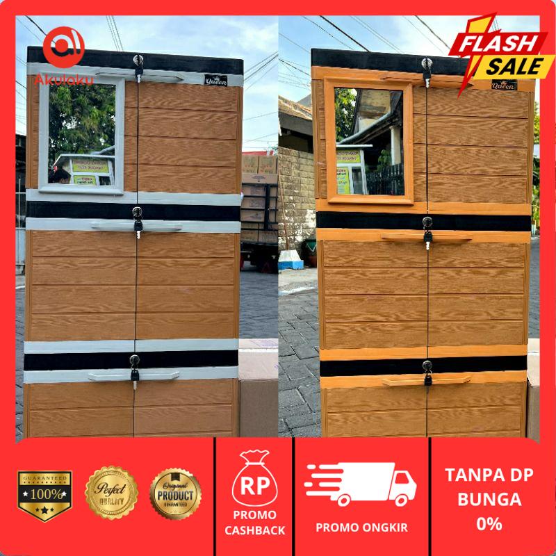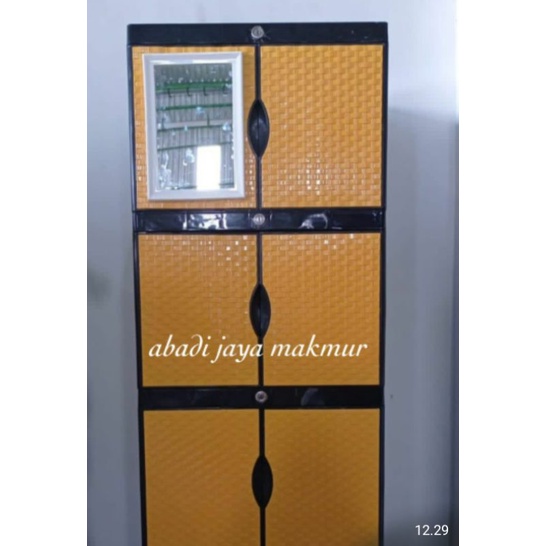 LEMARI PAKAIAN PLASTIK NEW SUSUN 3 PLATINUM / LEMARI PLASTIK MURAH / LEMARI PLASTIK KACA