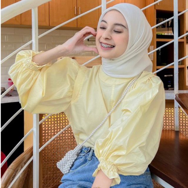 BLOUSE WANITA KEKINIAN TANGAN BALON TERBARU FASHIONABLE OOTD KOREA STYLE ORIGINAL MYMINOLS MONI ATASAN CEWEK TERLARIS