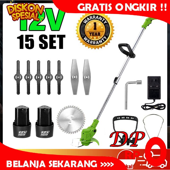 Ready Stock 12V Mesin Potong Rumput Cordless Grass Trimmer Mesin Pemotong Rumput Listrik Elektrik Portable