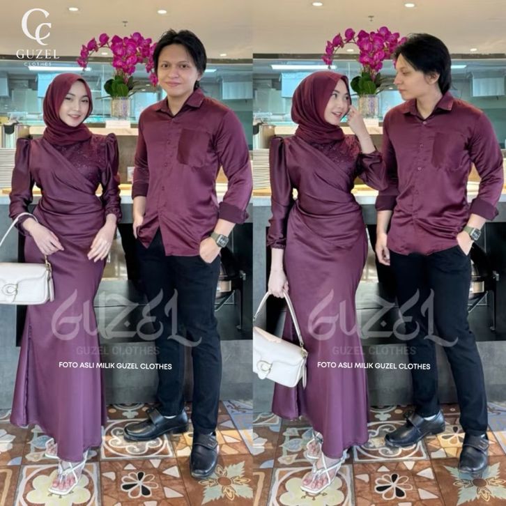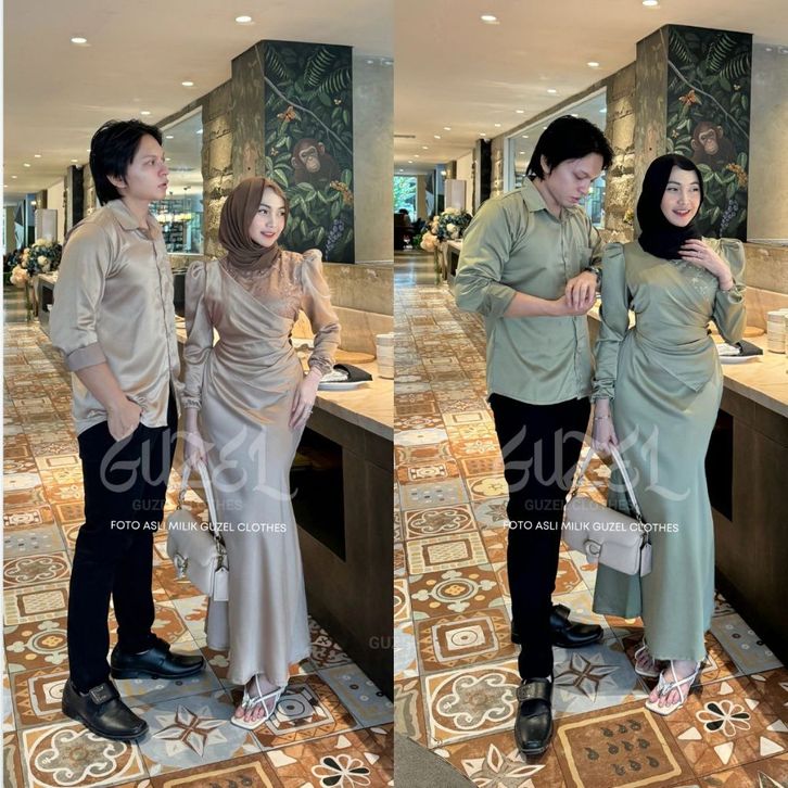 [Star] Couple Pasangan Lebaran / Couple Pasangan Kondangan / Couple Prince Elisa Dress Brukat by Guzel Satin Silk