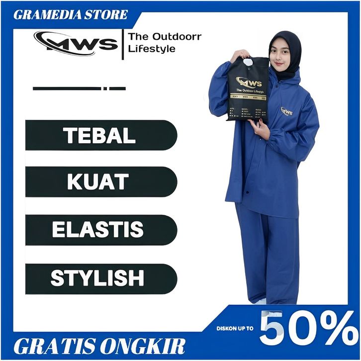 MWS Jas Hujan Setelan Pria Wanita, Bahan PVC 0,25 Waterproof PROMO