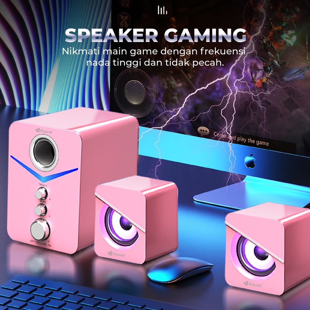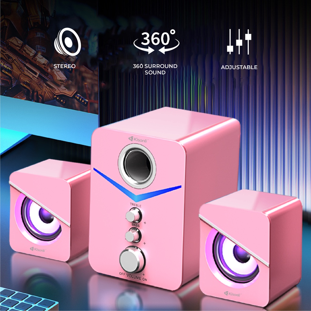speaker komputer pc mini murah spiker bas karaoke Speaker Komputer U3100 Bass, Treble And Subwoofer - Pink