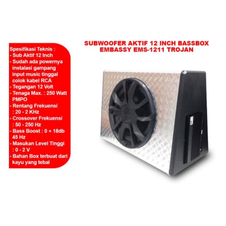 Subwoofer Aktif 12 Inch Embassy EMS 1211A 12 in Basstube Active Car ORIGINAL