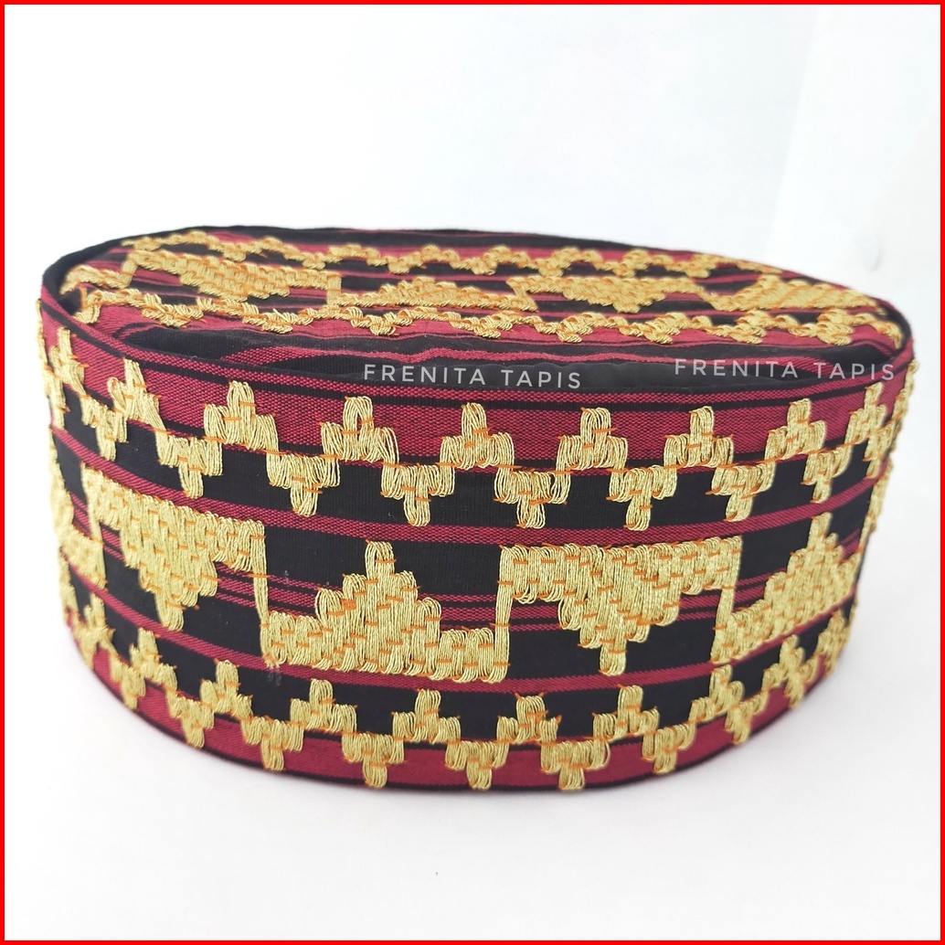 Cek Dulu Peci Tapis Asli Lampung Kain Tenun Kopiah Tapis Sulaman Bahan Salur Hitam