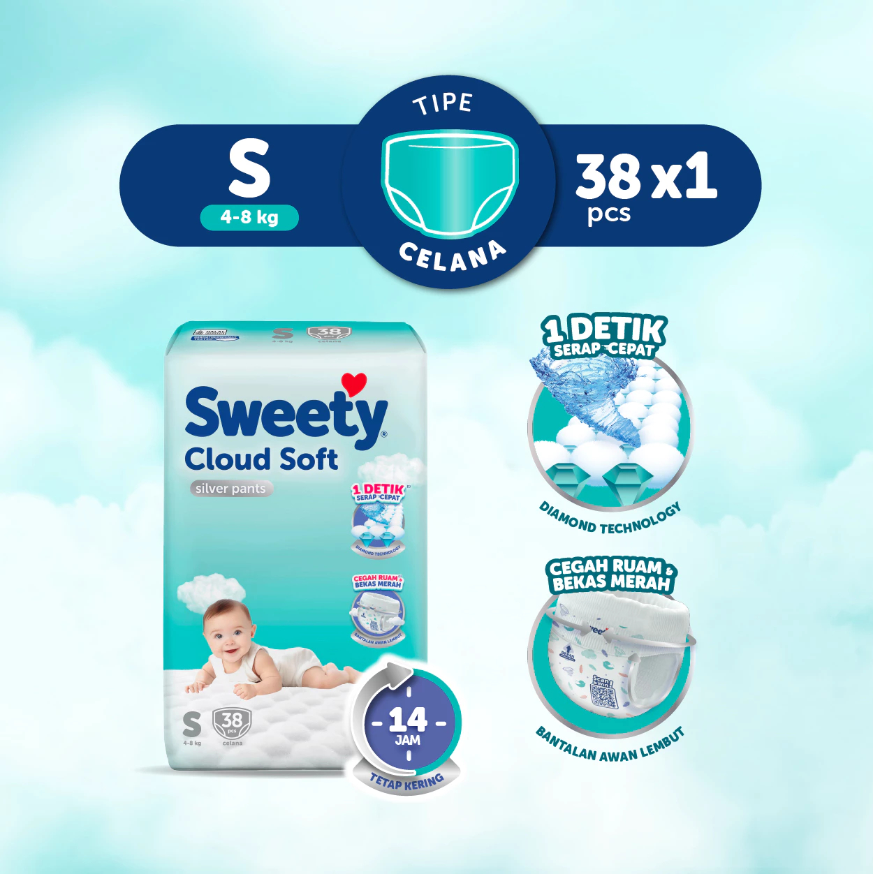 Popok Bayi SWEETY Bronze Comfort | SWEETY Silver Pants All Size